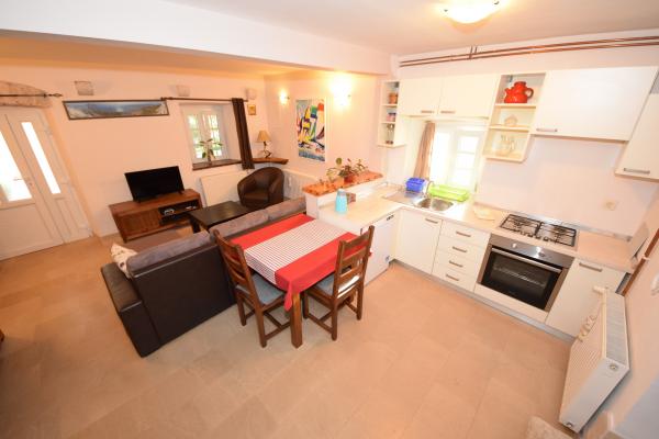 The old stone house is restored and equipped with all the necessary amenities. Located on a secluded location, it offers a peaceful and pleasant vacation. The house is located only 2 kilometers from Orebic, and 400 meters from the beach. Surrounded by greenery, olive groves and vineyards. Only 100 meters walk to the vineyard offers a beautiful view of the sea, Orebić and its surroundings. The large terrace, the shade of a centuries-old canopy, provides perfect protection against hot sunshine. For those who want perfect peace, swimming in a spotlessly clean sea, sunbathing on beautiful sandy beaches and quiet summer nights, this house is the ideal place for your vacation.