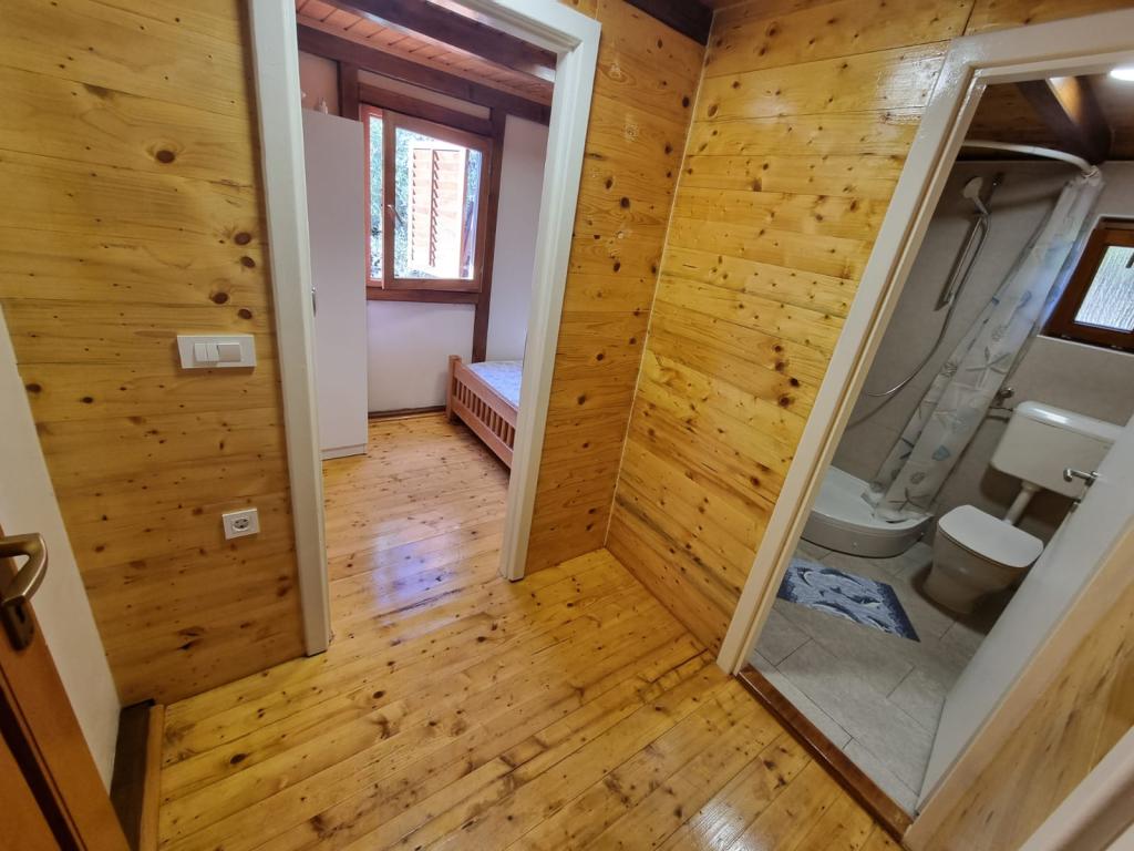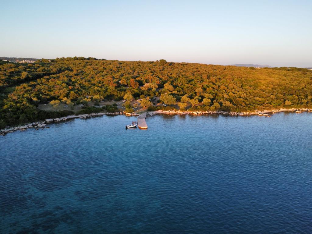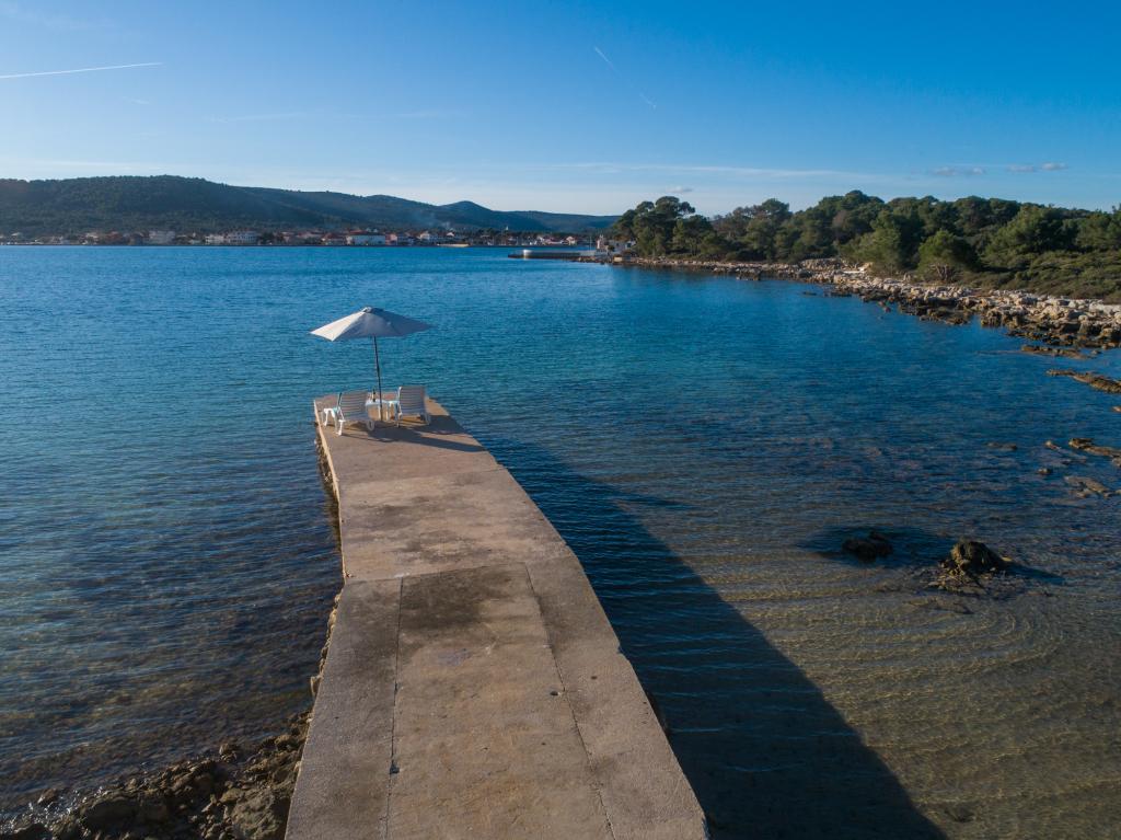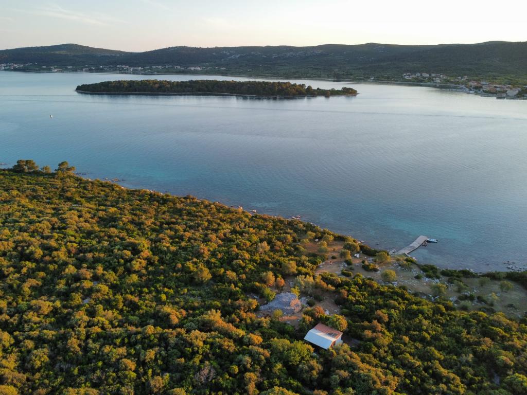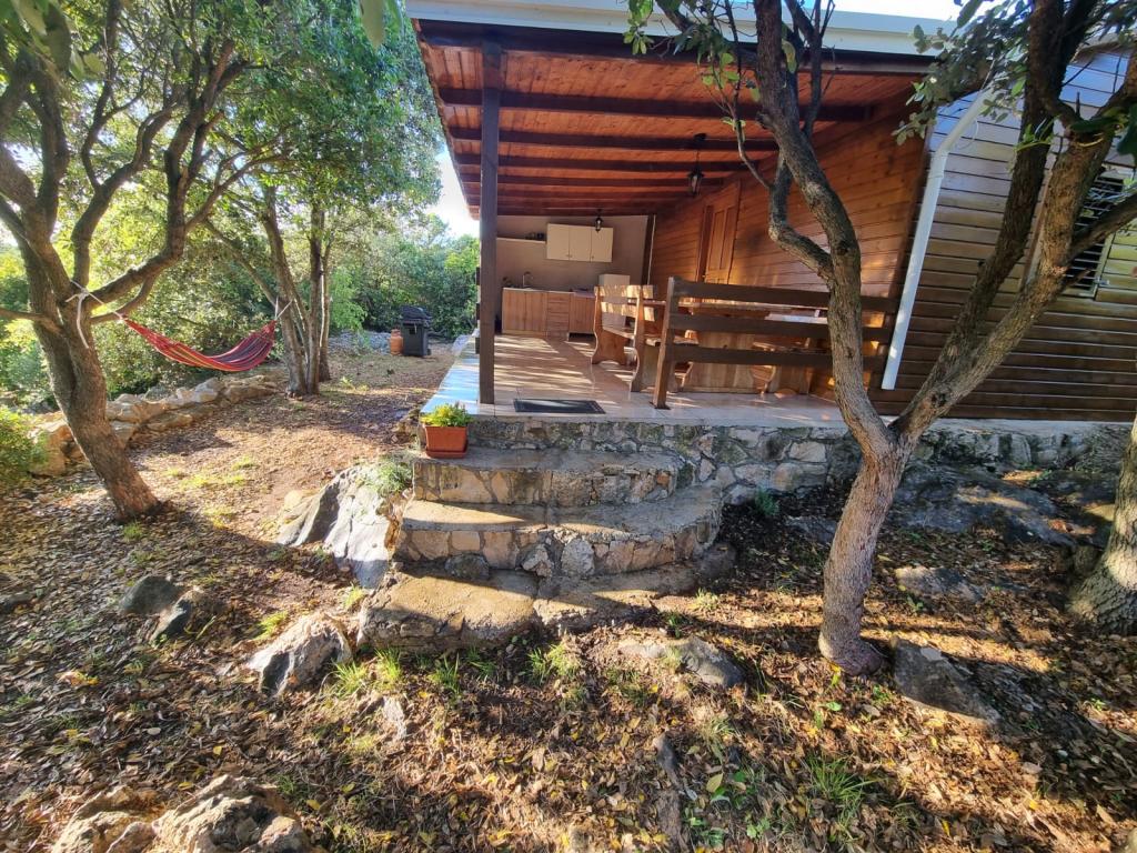 A newly built wooden house on a secluded spot on the island of Babca, which can be reached from the town of Pašman on the island of the same name. It is located on over 10,000 m2 of private land and has 25 m2 of interior space in which there are two double beds in two rooms measuring 140x200 cm and a bathroom. The kitchen and table are located on the outside covered area of 15m2. There is a TV in one room. There is wi-fi internet in the house.