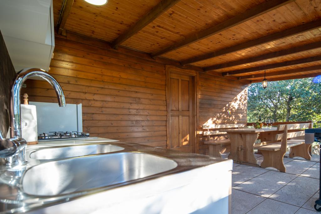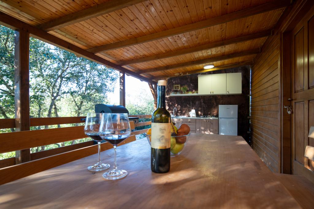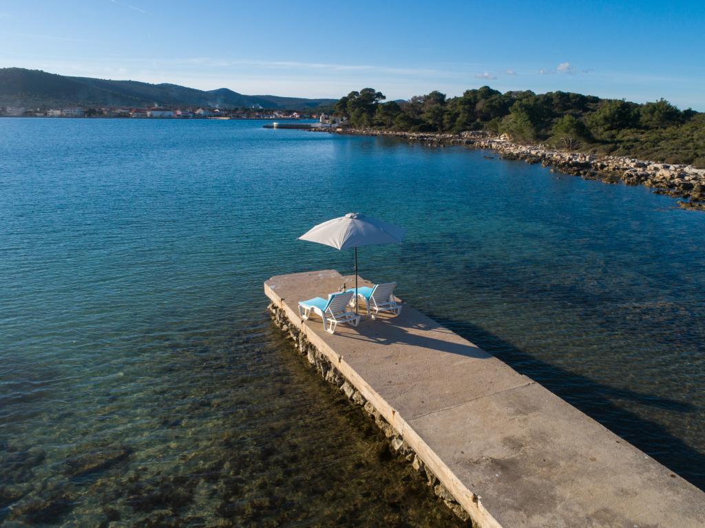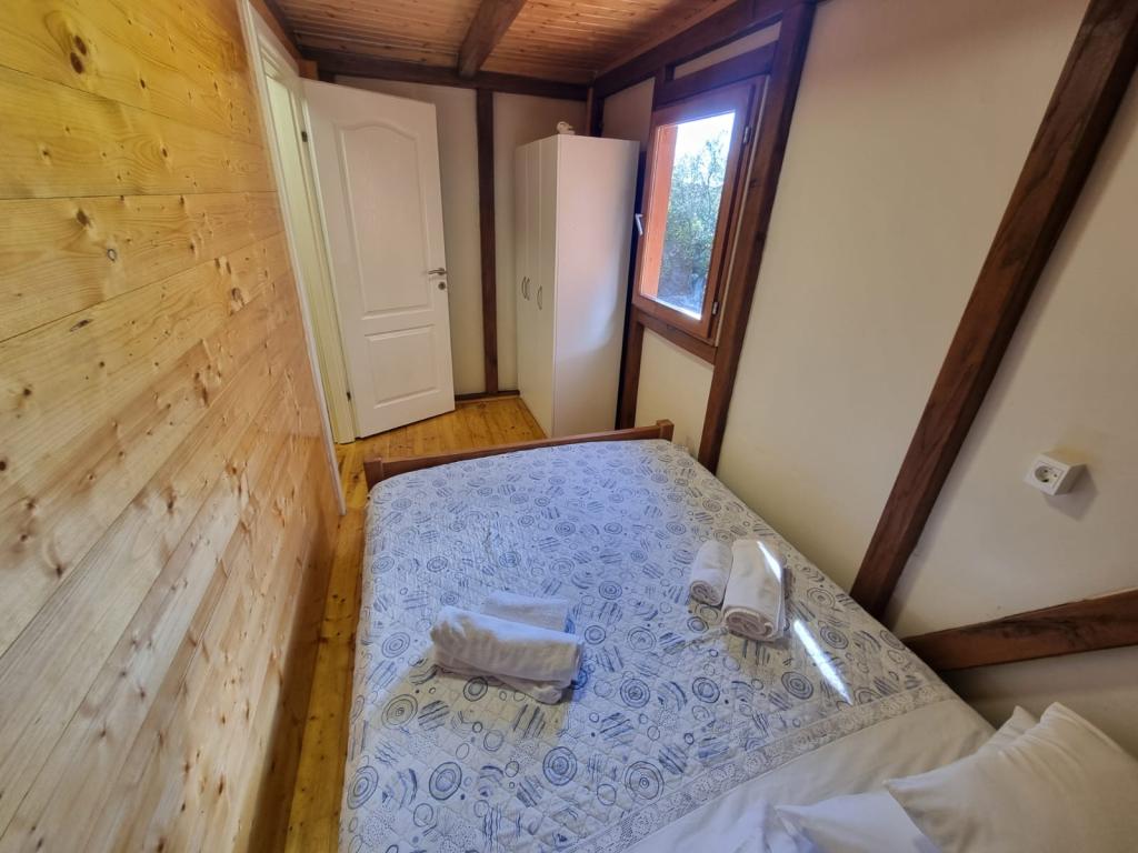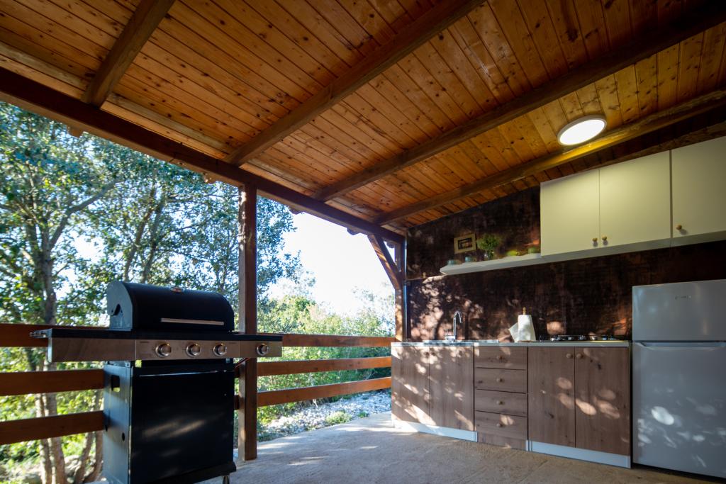 A newly built wooden house on a secluded spot on the island of Babca, which can be reached from the town of Pašman on the island of the same name. It is located on over 10,000 m2 of private land and has 25 m2 of interior space in which there are two double beds in two rooms measuring 140x200 cm and a bathroom. The kitchen and table are located on the outside covered area of 15m2. There is a TV in one room. There is wi-fi internet in the house.