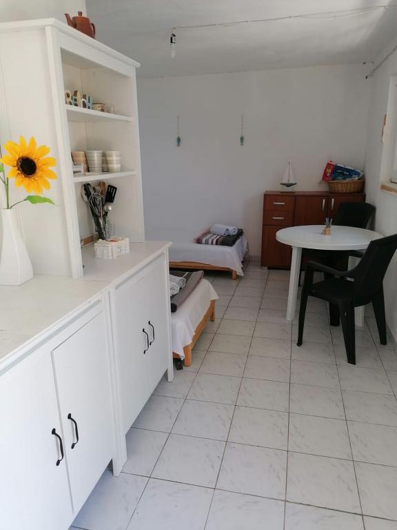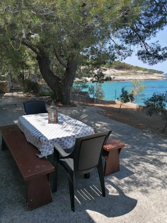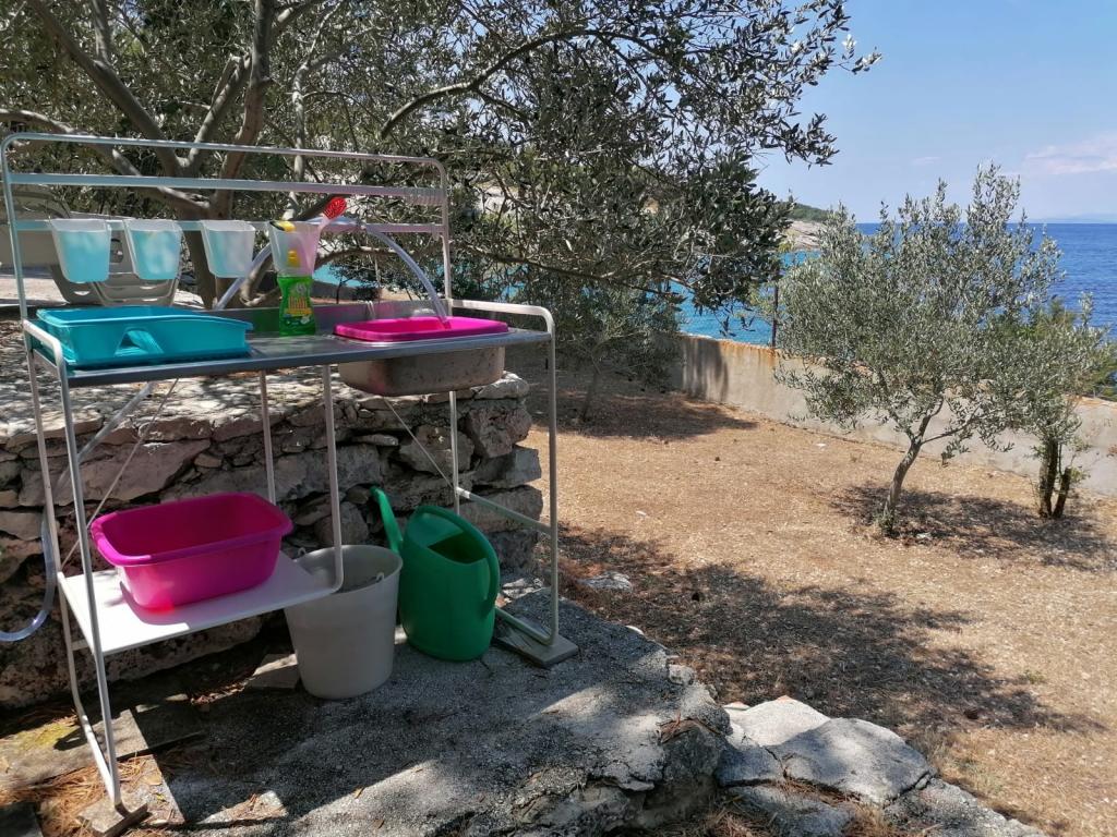Available dates: 16.-23.8.2025. and from 11.9. The house is located in Dučac bay 6km from Postira on the island of Brač and is ideal for fans of Robinson tourism who value nature and silence above all. There is no water supply in the bay, but we have a cistern for washing dishes and taking an outdoor shower and solar panels that are sufficient for lighting and charging mobile phones. Drinking water must be purchased. There is a good telephone signal. The house has 2 rooms: one has a double bed and the other, connected to the kitchenette, has 2 single beds. There is also an extra bed. The toilet is in a separate house (toilet and watering can). The house has a refrigerator, gas stove, fireplace/barbecue in the yard, kitchen utensils, utensils and bedding. The house itself can be reached by car, the road is a bit steep but newly paved, without any potholes, etc. You can walk to the nearby Lovrečine Bay, which has been declared the most beautiful beach in the Adriatic and also has a restaurant. A path along the sea leads to the bay.