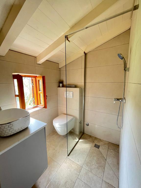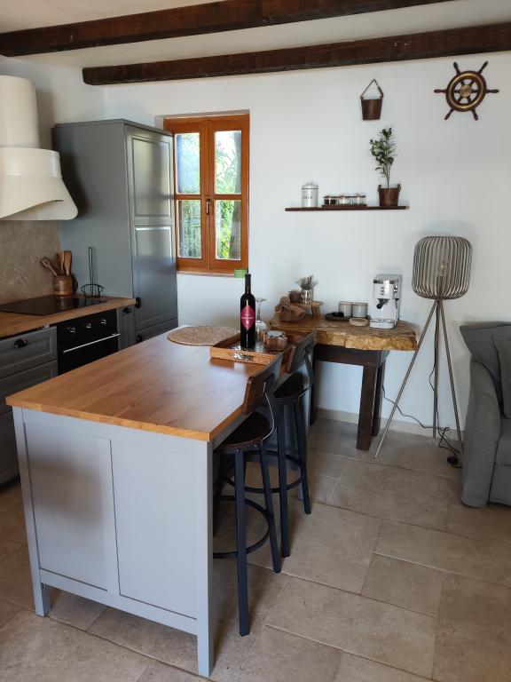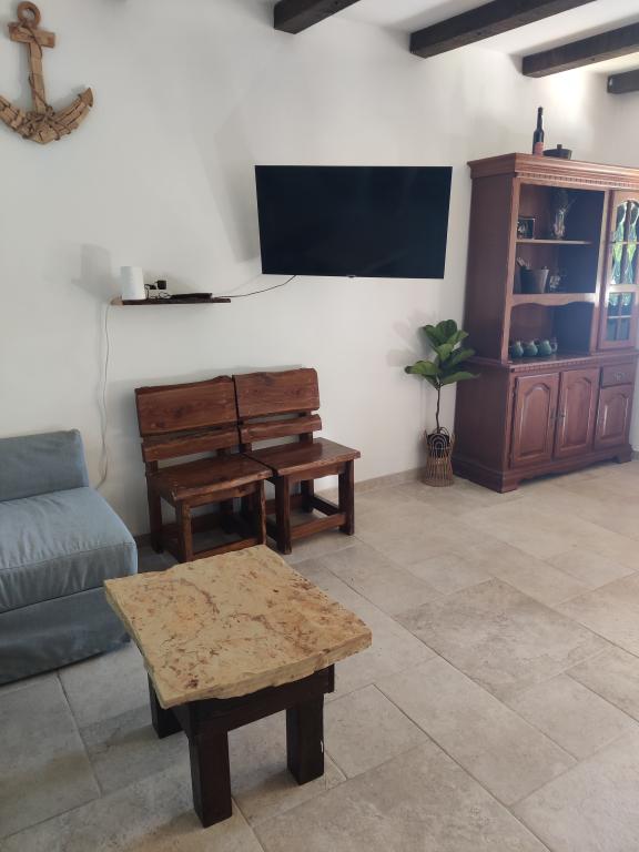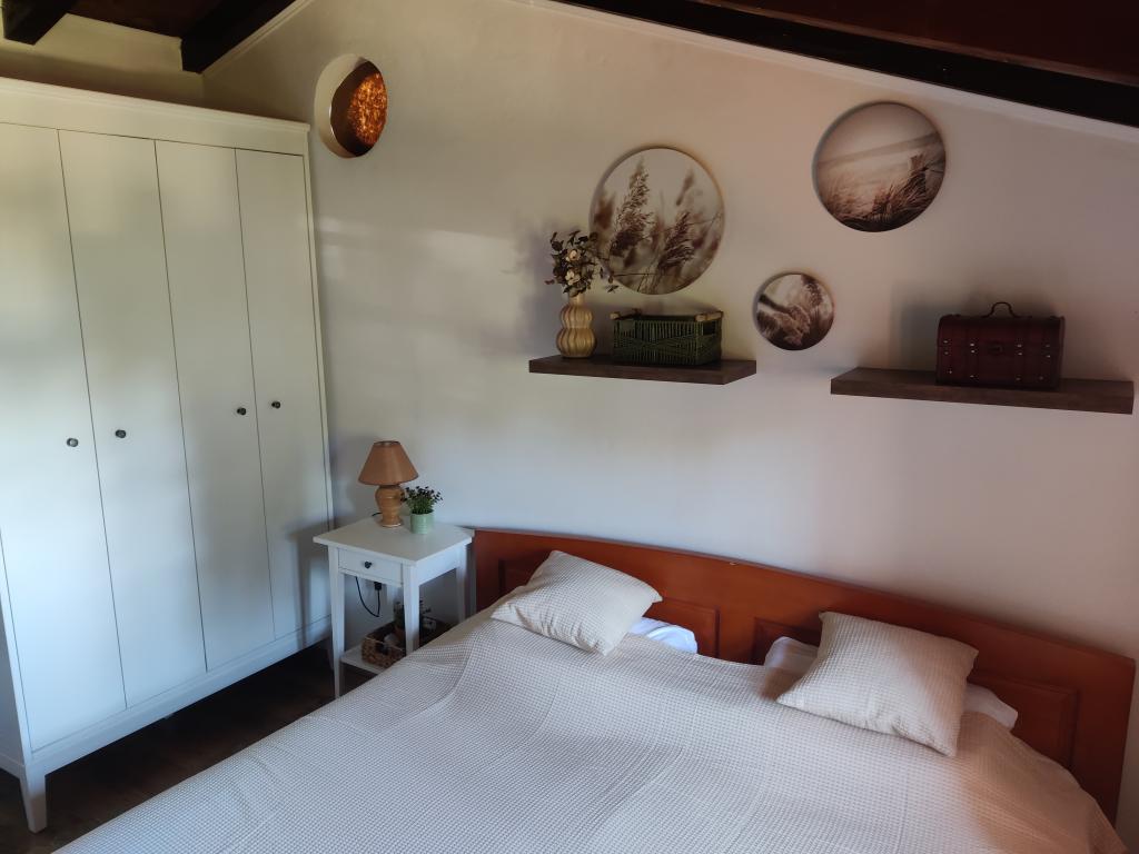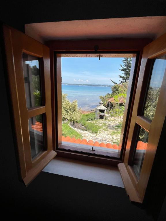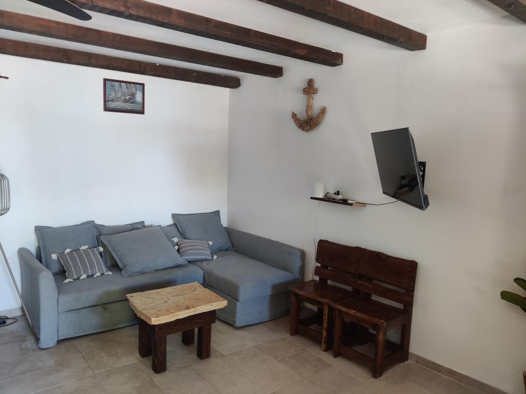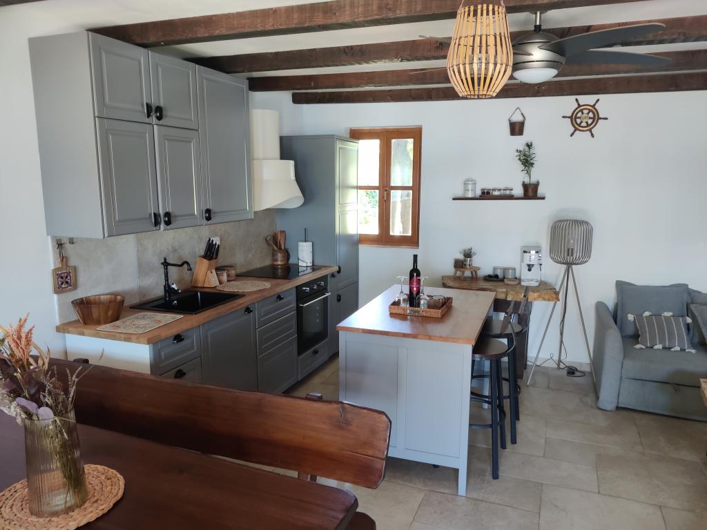 The ground floor of the house consists of one space in which there is a new modern kitchen with an induction hob, oven, dishwasher and refrigerator. Kitchen appliances include a kettle and a coffee machine. The living room consists of a sofa bed that becomes an extra bed, a small coffee table, an old solid wooden shelf and a television. The TV is equipped with satellite channels, and private WiFi is also available. Right next to the window there is a solid table and benches where you can also eat and enjoy the beautiful view of Biograd na Moru. On the first floor of the house (in the attic) there are two bedrooms and a toilet. One has a double bed, and the other has two single beds. The air conditioning is located on the first floor to provide a more comfortable sleep. Behind the house there is a spacious yard that is fenced on all sides,
