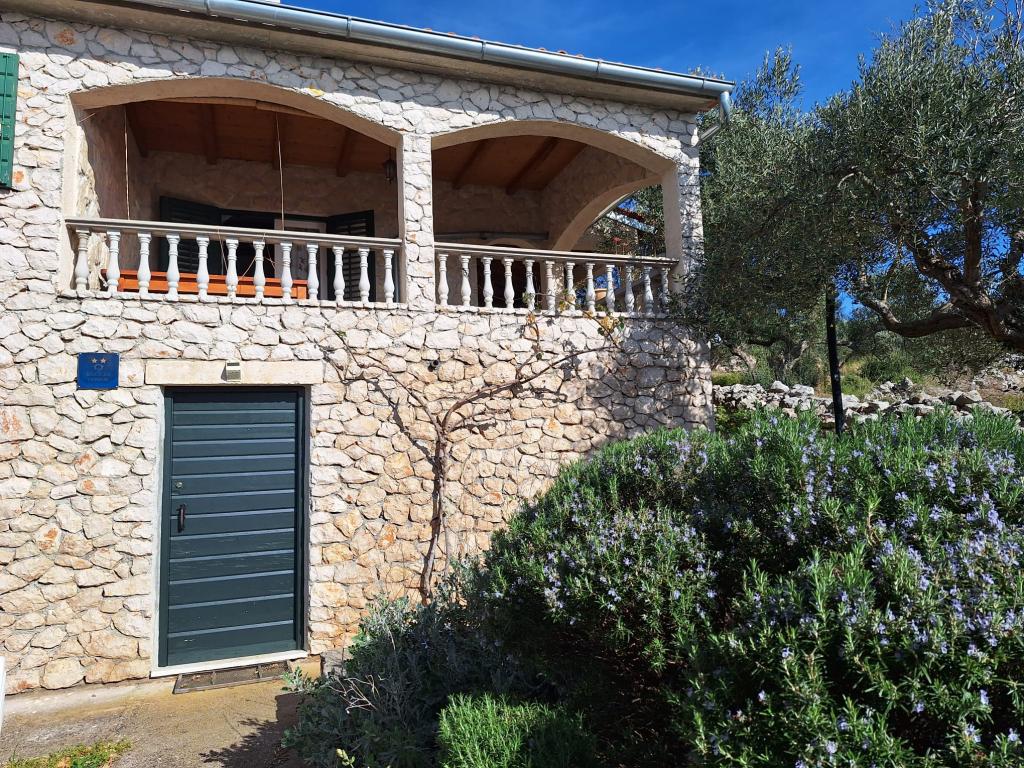 The Robinson house Cvita is located on the south side of Pašman, in Vitane bay. It is 4.5 km from Tkon. Tkon can be reached by ferry from Biograd (15 min. drive). The property has two bedrooms with a ceiling fan for a comfortable sleep, a bathroom with a shower, a living room with a kitchen and a covered terrace with a grill. The house is equipped with 220v electricity via solar collectors, hot water, wi-fi, solar shower, parking... In the living room there is a pull-out sofa (extra bed for two). In front of the building is a jetty for mooring boats. There are 4 deckchairs with umbrellas on it.