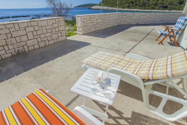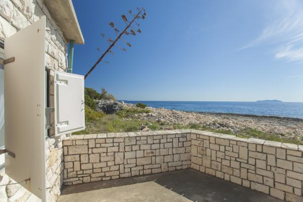 The house is located on a small island Pržnjak, on the South side of the island of Korcula, near Vela Luka. On the coast, only a few meters, the house can accommodate up to 7 people in two apartments have three bedrooms with 3 double beds and 1 extra bed, 2 kitchens and 2 toilets. We have a large garden which is surrounded by a high wall, a large terrace overlooking the open sea, in the yard, we have a big fireplace, and dining tables. Each apartment is equipped with TV. Electricity is the solar panels should therefore limit the large consumers. The nearest place is about half an hour, 10 minutes by boat and 15 minutes by car. For those who want a break from the urban areas Pržnjak paradise.