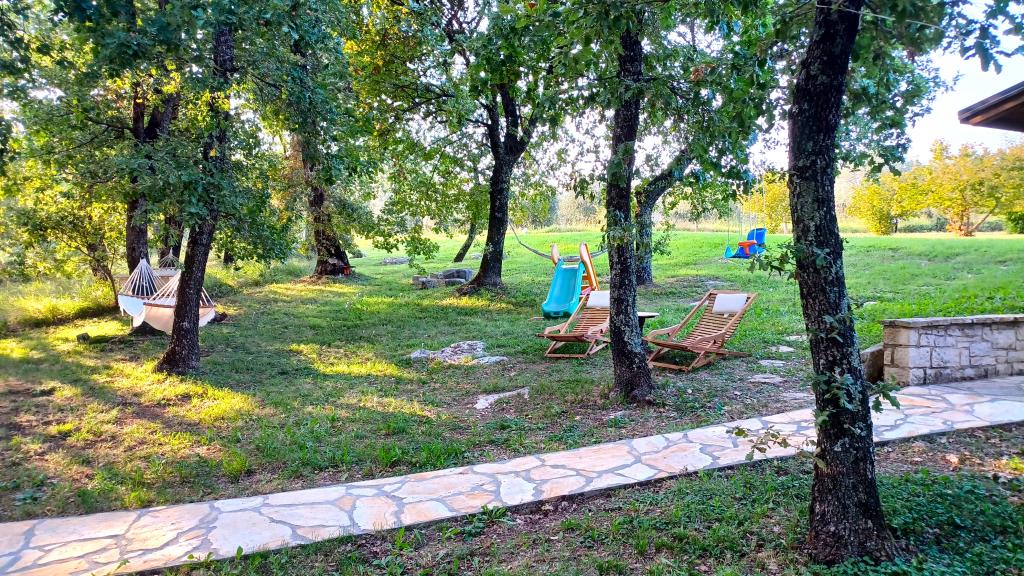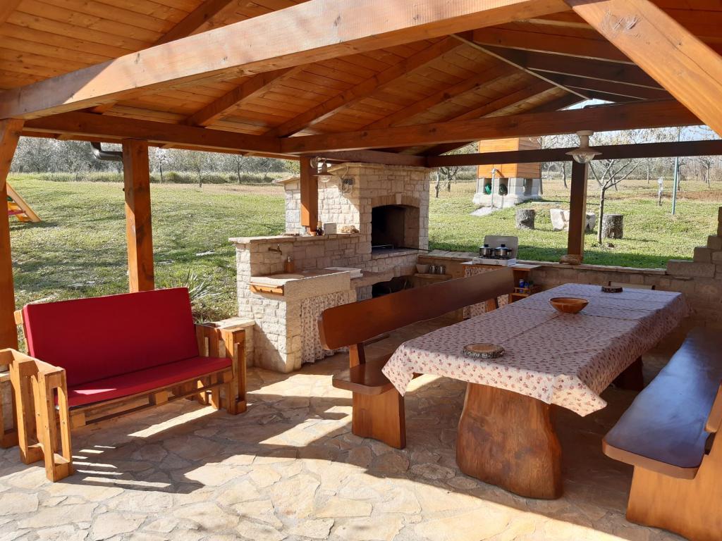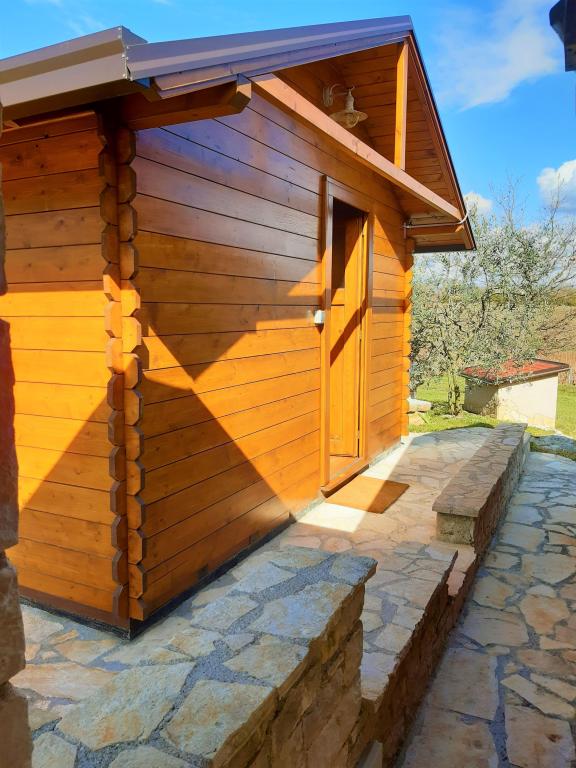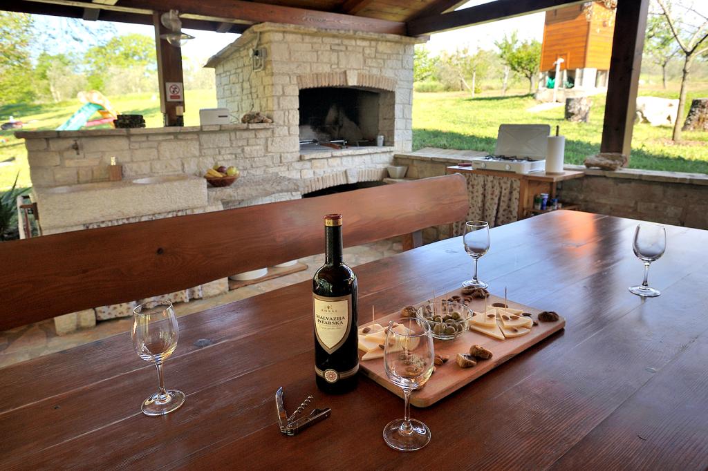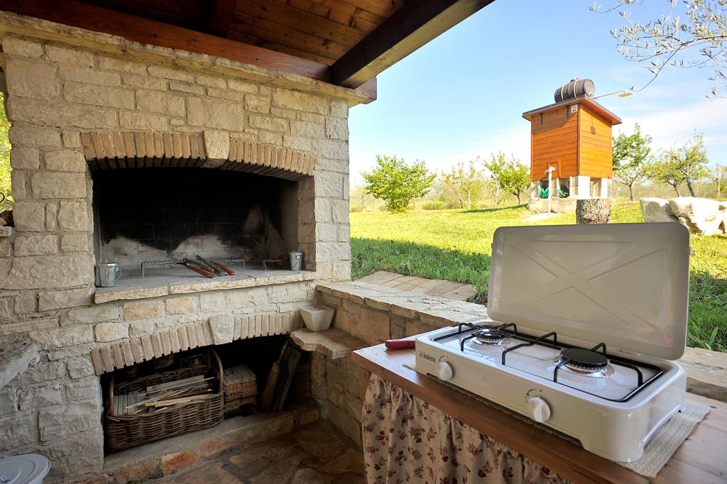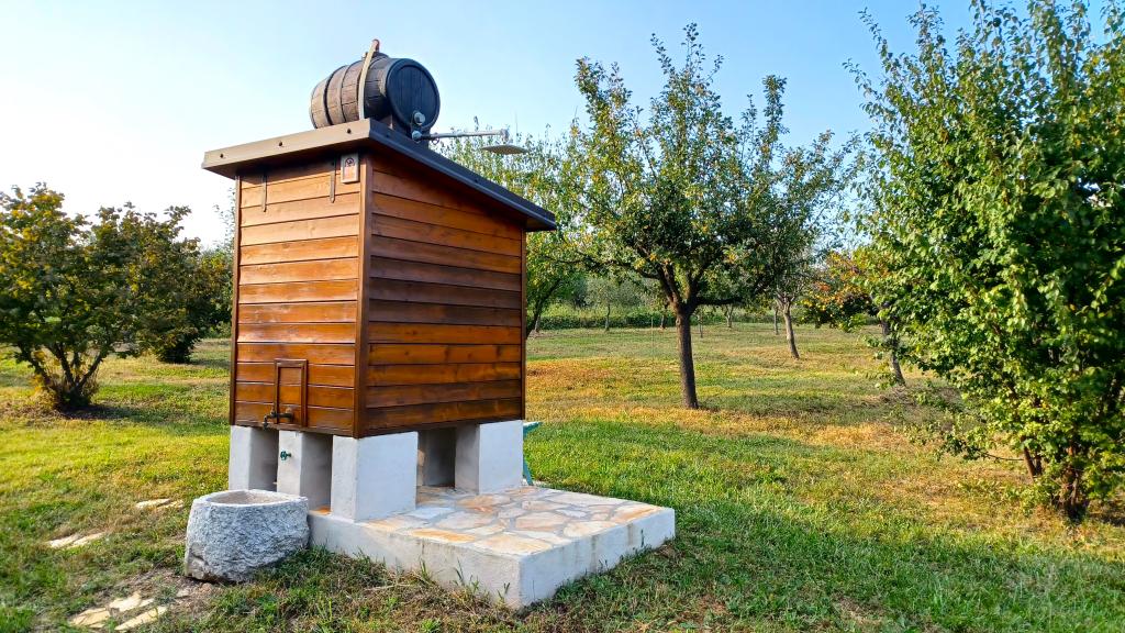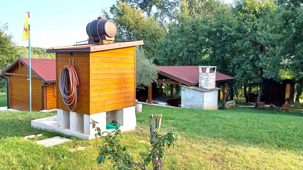 Robinson House Istra is located near Vižinada, surrounded by vineyards, arable land and forest. The facility is accessible by vehicles. It is energetically autonomous, the water is rainwater that is collected in a tank, electricity through a photovoltaic system. Hot water through a boiler heated by the sun. But unless you want to iron, reheat food in the microwave or similar, you won't miss anything. Of course, with rational use of resources. The peaceful and quiet environment is ideal for rest and relaxation, both for couples and families with children. Chirping birds are additional notes to the perfect harmony. Robinson House Istra consists of two buildings, one with two double beds, the other with a bathroom, sofa bed, fridge and kitchen utensils.