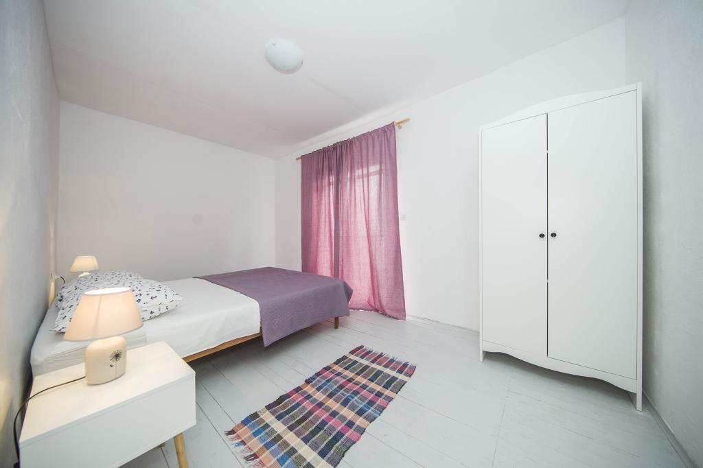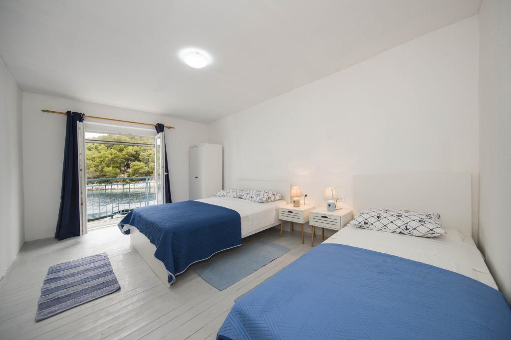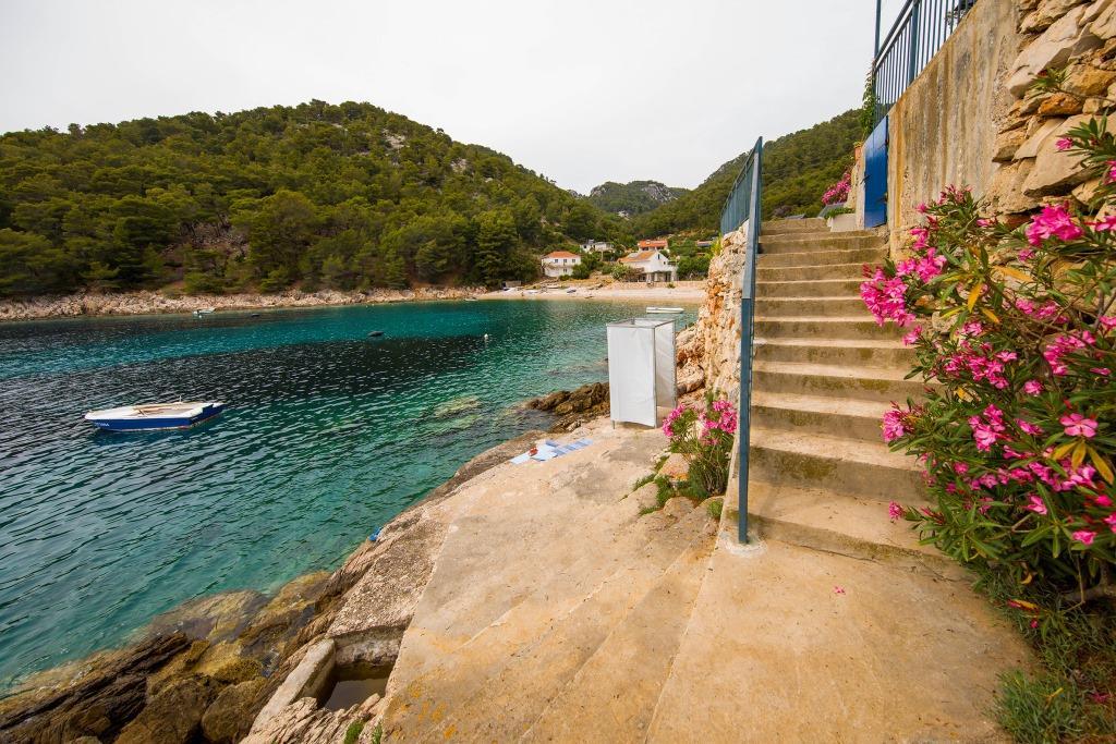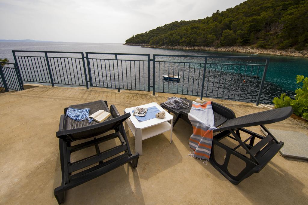 HOUSE SANJA – MAGIC SEA FRONT ROBINSON HOUSE We invite You to beautiful simple and spacious four bedroom house situated in beautiful bay on south side of island Hvar. House is 10 meters away from the sea and have absolut privacy. From house terrace You will enjoy in beautifull sunsets, quiet ambience with sounds of waves and open view on the bay, sea and stone beach. THE SPACE House is decorated in a minimalist and Dalmatian style with spacious three bedrooms on the first floor and kitchen and store room in the ground floor. In front of the house there is spacious terrace with beautiful view on the bay, sea, stony beach and most beautiful sunsets. Two bedrooms have double, one two single and one bedroom has one double bed and one single bed, so there are nine beds. Beside terrace there are stairs to little seafront so you have about 10 meters to the sea. If You don`t want to be on seafront you can walk about 50 meters to beautiful stone beach.