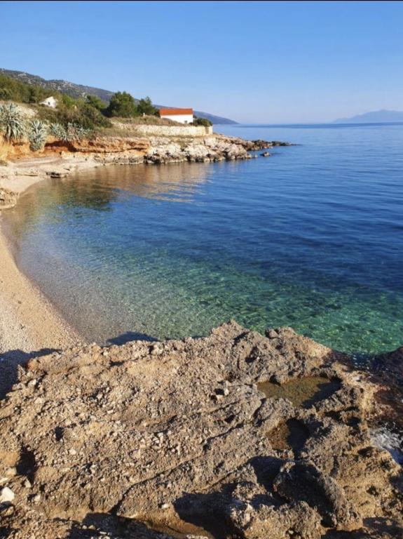The house has a capacity of up to 5 people, located on the island of Hvar in Gromin Dolac. The property has 2 separate bedrooms, a kitchen, a living room and a toilet, both rooms have a double bed, and in the living room there is a sofa set. There is also an outdoor toilet and an outdoor shower on the property. Ferry tickets are not included in the price. We recommend arriving by early afternoon, because reaching the property at night is difficult. The distance from the sea is 1 meter. The house is connected to the electricity grid and is air-conditioned and covered by a wifi internet signal. Water is from our own water tanks (please use in moderate quantities)!!!. Public transport is not frequent in this part of the island, so we recommend that you visit us by car.