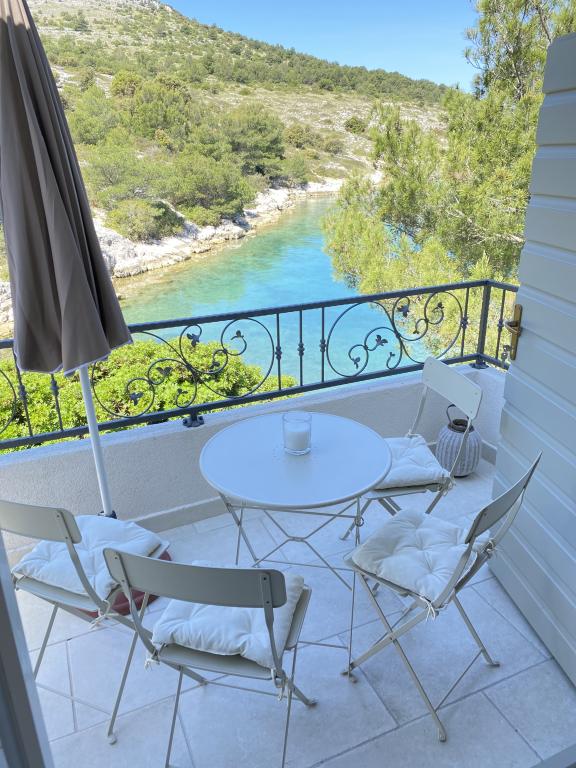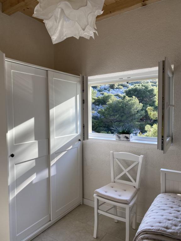 The newly built holiday house "Levina" is located in an oasis of greenery and peace, a perfect place for relaxation and enjoyment. It is decorated in a country style. It is located 10 m from the sea in the bay. The balcony offers a beautiful view of the sea. The bay is full of greenery, it is tucked away, you will feel separated from the world, overwhelmed by peace and beauty. There are only a few other houses in the bay. The house has two bedrooms, a bathroom with a shower, a balcony with a beautiful view and an outdoor terrace with a grill. The house is equipped with a portable air conditioner and a fan. Figuratively speaking, water on the island is gold, so it must be used rationally. The water comes from natural springs, rainwater. The water is not for drinking, it can be used for showering and washing. Top restaurants, ACI Marina and a market are located in the neighboring bay. You have about a 20-minute walk along the rocks or by boat to get there. You are literally located at the entrance to the Kornati National Park. It is best to buy groceries and drinking water at the port of departure.