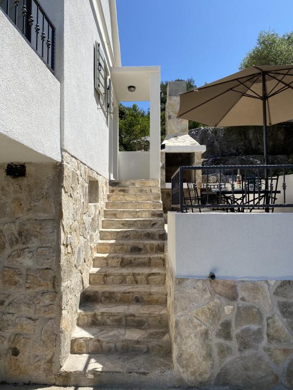 The location and the house are great. I can say it's a very comfortable Robinson because the house is practically new and very nicely furnished... the photos are what awaits you. For a small backup option, you have a 15-minute paddle boat ride to the shop in the marina or a 700m walk along the coast along the rocks, and there's already a path. There are 6 houses in the bay, but this is the only one for rent and we were alone. You even have hot water in the shower and paddle... in short, everything you need and very nice, friendly owners who bring you to the location with a fast boat.
