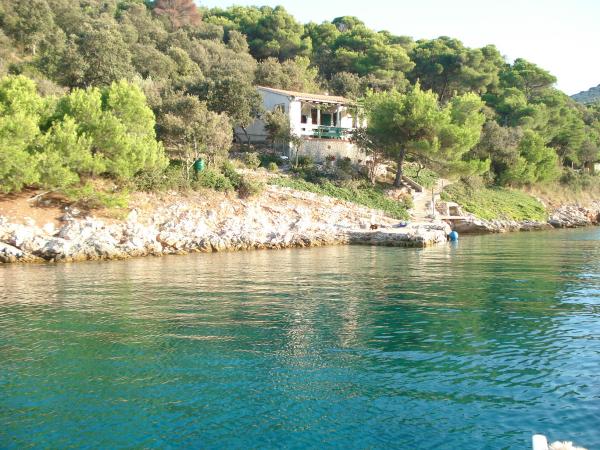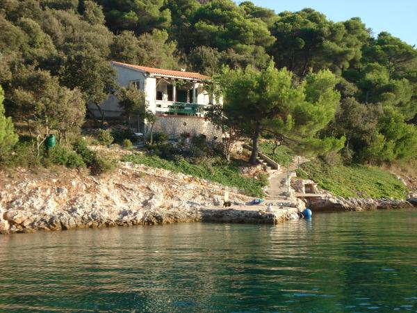 Fisherman's House Jakov is a fisherman's house ideal for a peaceful and idyllic vacation. The house is secluded, surrounded by pine trees and vegetation. It is located right by the sea and has a private pier for mooring a boat. From the house, you can reach nearby restaurants and the marina by boat in a few minutes. The house has running water, except for the shower. The shower is outside. Electricity is solar at 220v