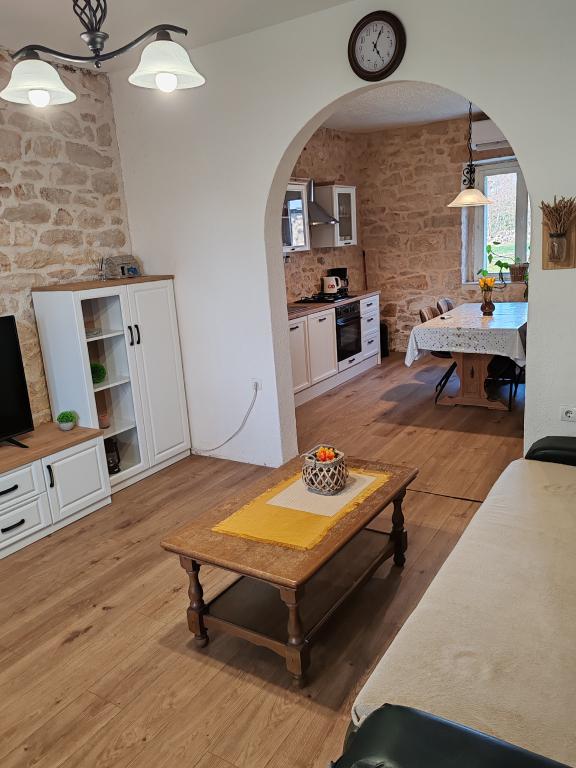 Our household is located in a small and quiet village of Ključ, between 2 rivers, Krka and Čikola, on the very border of the Krka National Park. The city of Šibenik and the Adriatic Sea are only 25 km from us, or a 20-minute drive by car. 10 minutes to the Čikola climbing area in the Čikola canyon. The restaurant is a 5-minute walk from the apartment. All apartments are located on the ground floor of the building, with a large yard, secured parking. Swimming pool for guests to use with deck chairs and garden furniture. The location is ideal for nature lovers. All apartments are air-conditioned and fully equipped for a longer or shorter stay