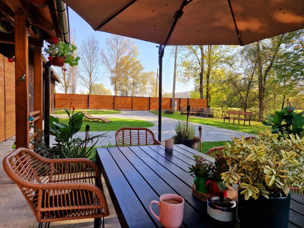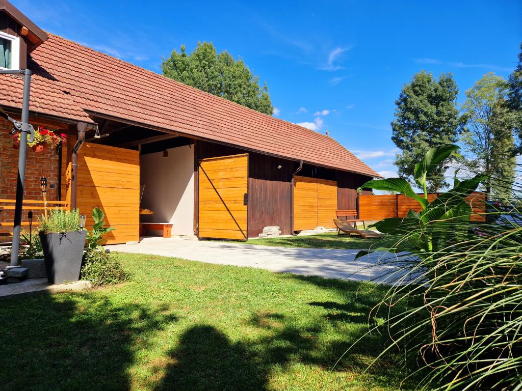 The property on which the holiday home is located offers the possibility of studying traditional crafts, enjoying the lake/fishing, walking along the river. Upon your arrival, you will definitely be greeted with a welcome drink and a few other little things. Also what we recommend to visit in our vicinity is: Nature Park Lonjsko polje - Nasalja Krapje, Čigoć, Muzilovčica. If you are more of a mountaineer, then Omanovac Mountain Lodge near Pakrac and Moslavačka Gora near Kutina. For those who prefer to enjoy themselves with animals, we recommend the Lipik State Stud. If you just like to relax, the Daruvar thermal baths and the Lipik thermal baths and the Aquae Ballissae water park are nearby. Furthermore, we recommend that you definitely try some of the Moslavina wines, especially Škrlet, for which Moslavina is famous, and some of the Slavonian delicacies, because the house is located on the very border of Moslavina and Slavonia.