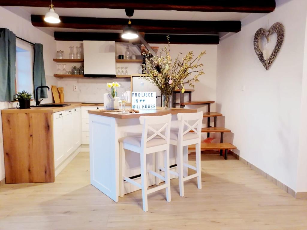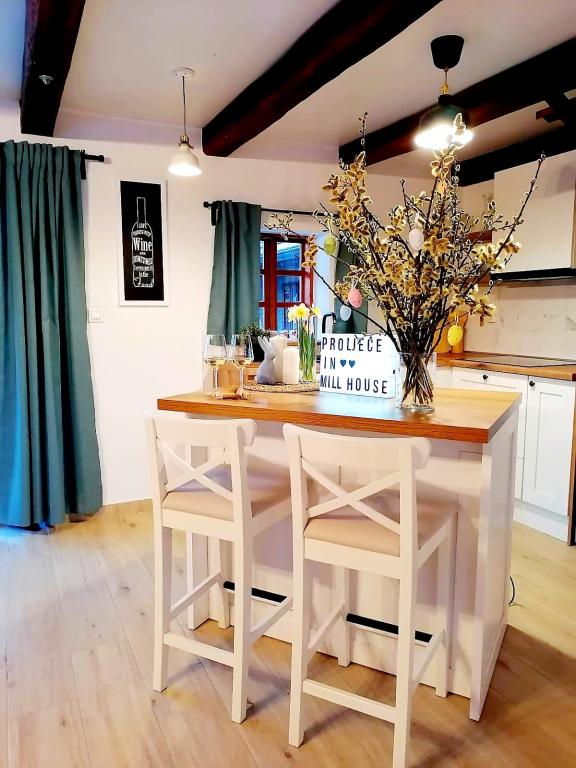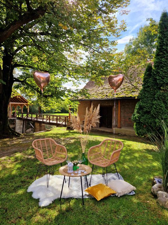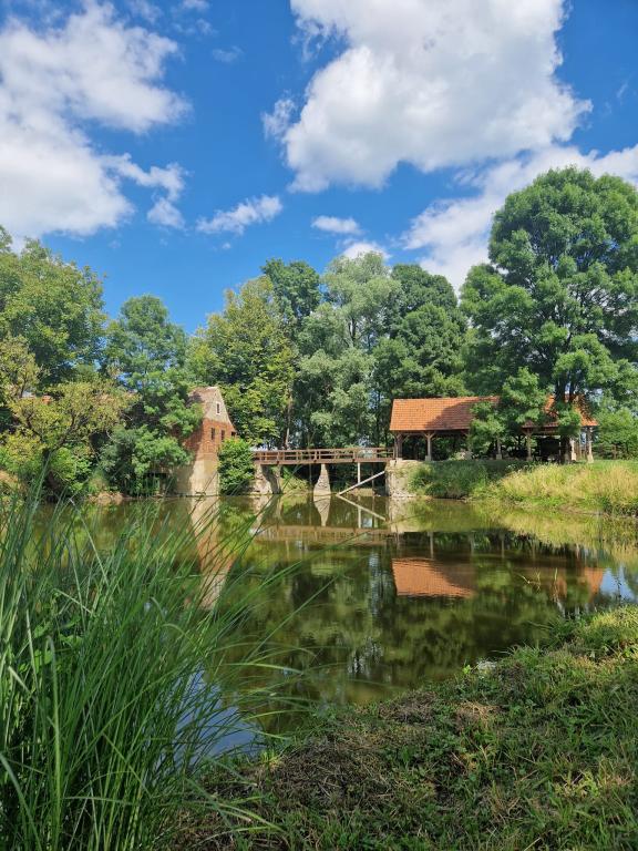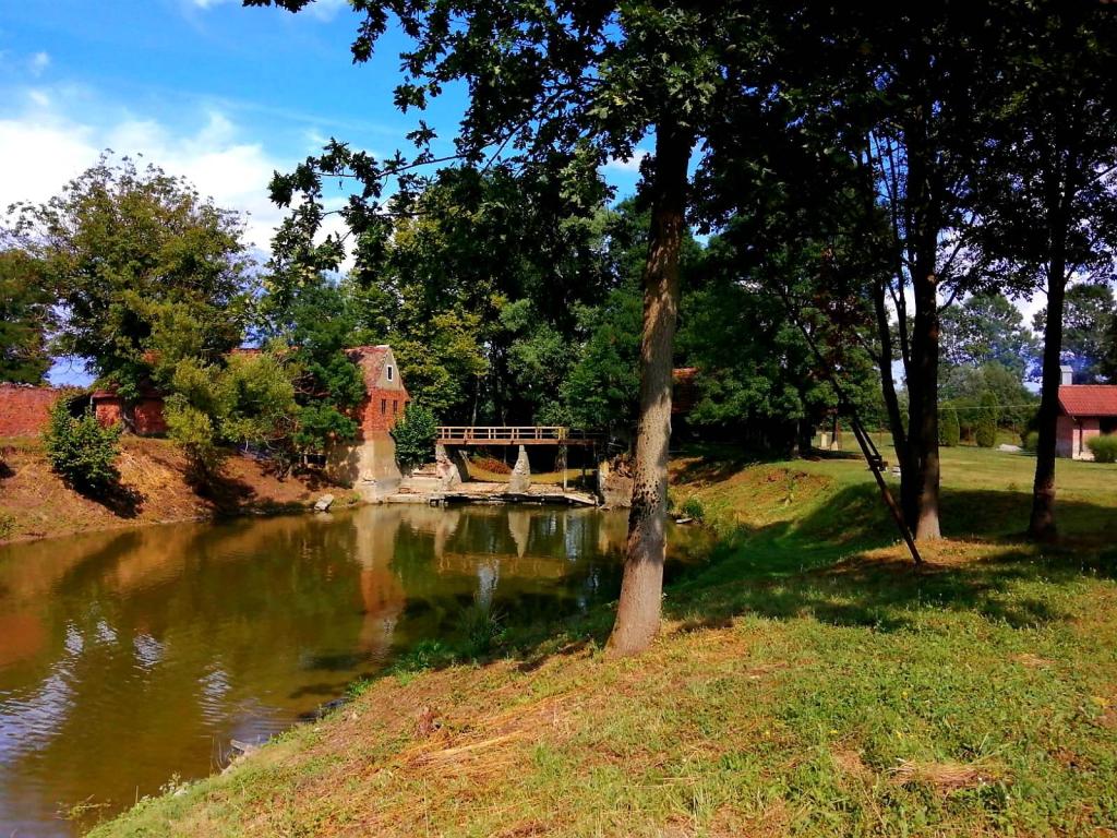Holiday house "U Mlinu" - In Millhouse is located an hour's drive from Zagreb, near the cities of Kutina, Lipik, Daruvar, Novska. It takes 5 minutes to walk to the first settlement. The property on which the house is located is large and spacious. In the yard, there is a lake, a small bridge, a sawmill and a mill that give a touch of tradition to the whole location, although the decoration of both the external and internal spaces is made as a combination of modern and traditional. In the immediate vicinity of the holiday home is the Pakra river - about 30 meters from the house. The interior design is made as a warm, cheerful and pleasant space for hanging out with friends or family gatherings. The house is equipped with the necessary household appliances, the bathroom also has basic necessities (paper, towels, hair dryer). The rooms also have bed linen, blankets and places to store clothes.