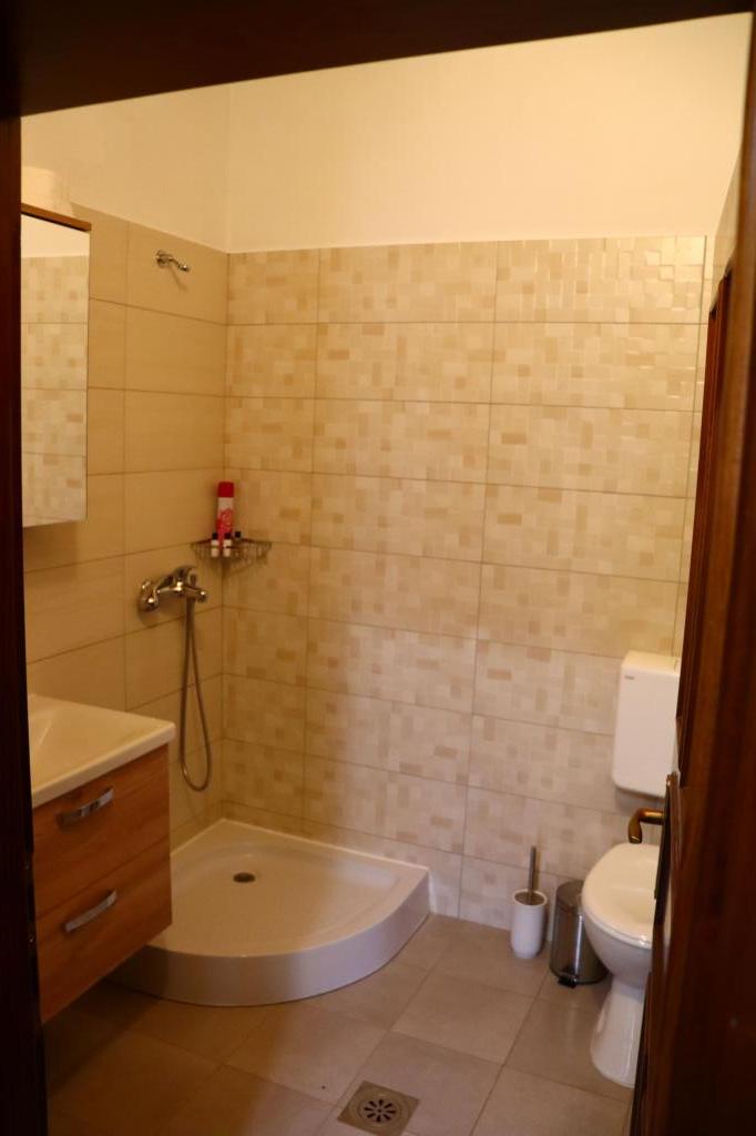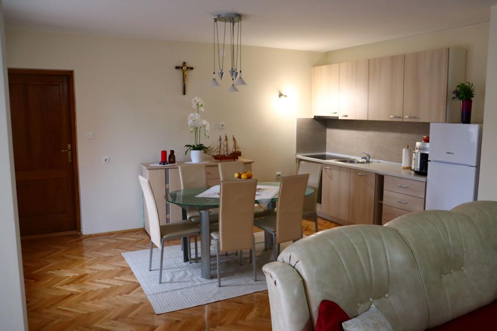 Newly renovated and modernly equipped apartment in a quiet part of the village. It consists of a bedroom, living room, hallway. bathrooms, kitchens with dining rooms and terraces. Access and use adapted to use by persons with disabilities. Capacity: four adults. Room Newly renovated room with attached bathroom in traditional style. Capacity: two people (double bed).