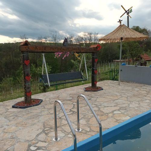 Our Holiday House Janković is located on the hills near the town of Ludbreg. We have furnished this three-star house in a traditional way so that our guests can taste a breath of life on the "Ludbrek hills". In this small village isolated from noise and traffic, 6 kilometers from Ludbreg, you are surrounded by forest, hills and vineyards. Is there a better way to escape from the busy life and spend unforgettable moments with family or friends? We offer a luxurious indoor jacuzzi, an infrared sauna, a prefabricated outdoor pool, a court for basketball, badminton, volleyball, and indoor football. There are also benches, garden swings, walkways and more, and we are an ideal place for Nordic walking, driving along forest paths and walks, or quad and cross-country rides all the way to the Kalnik mountain. Our property covers 5,621 m2 and you will enjoy our garden, orchard and vineyard, with lots of aromatic and herbaceous plants, all to yourself.