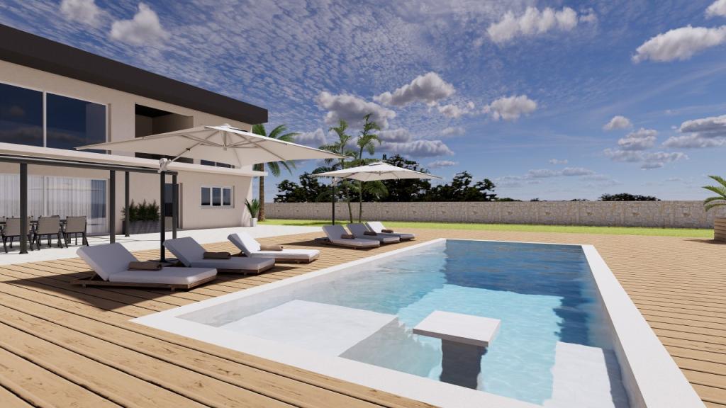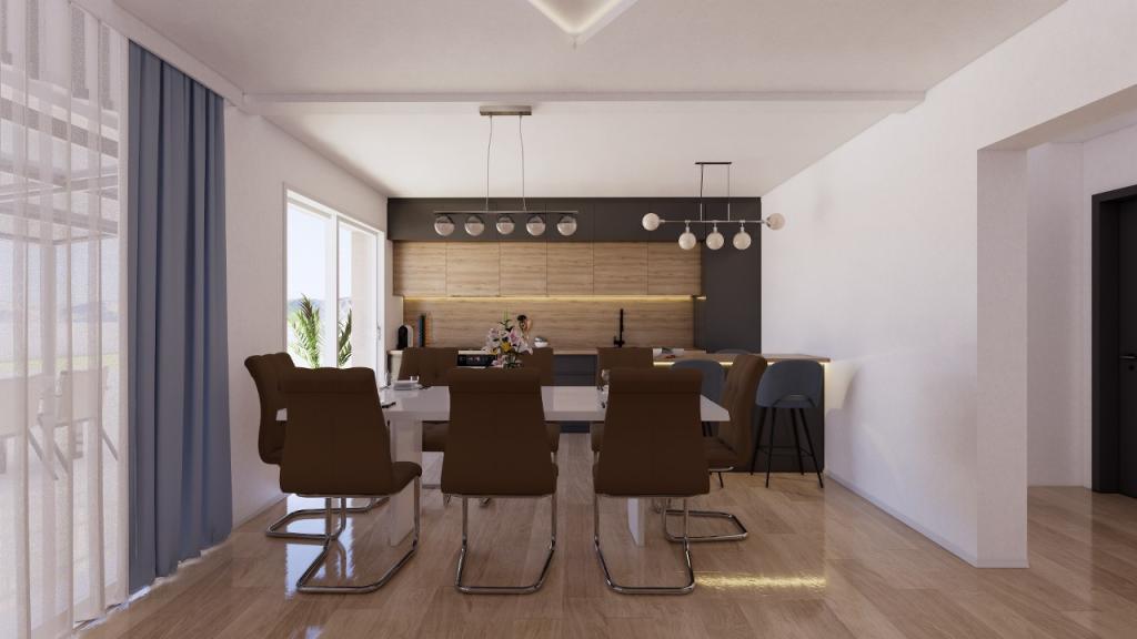 In the beautiful nature, on the place where you heard only birds is situated Villa Sky D. It is house for 6 + 2 people. There is a large heated swimming pool with terrace and a large private playground for children and adults. In the evening you can sit outside, grill and dinning in harmony of nature. In the Villa are 3 bedroom, each with own bathroom and balcony, modern kitchen with board for cooking, washing machine, fridge .... kitchen bar space open living room (with 2 beds / sofa) There are also toilet for all, with wash mashine for clothes; fitness .. Everthing is without steps and one roome is suitable for invalid because the bathroom is adjusted. Parking in front of the house and wifi are free. If you want to hear mucis or you are laut, that is no problem because the first house is 4 km distance. Split is 40 km, Makarska is 50 km. 12 km is place Omis with nice beaches and clear sea. Price is from 300 € - 450 € / night for all house. It depends on the date.