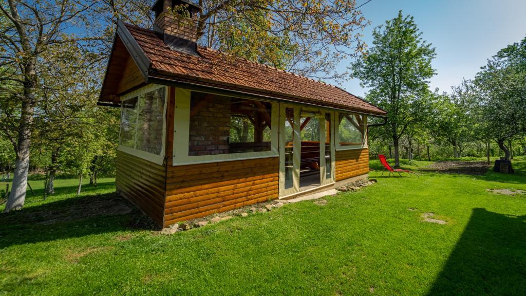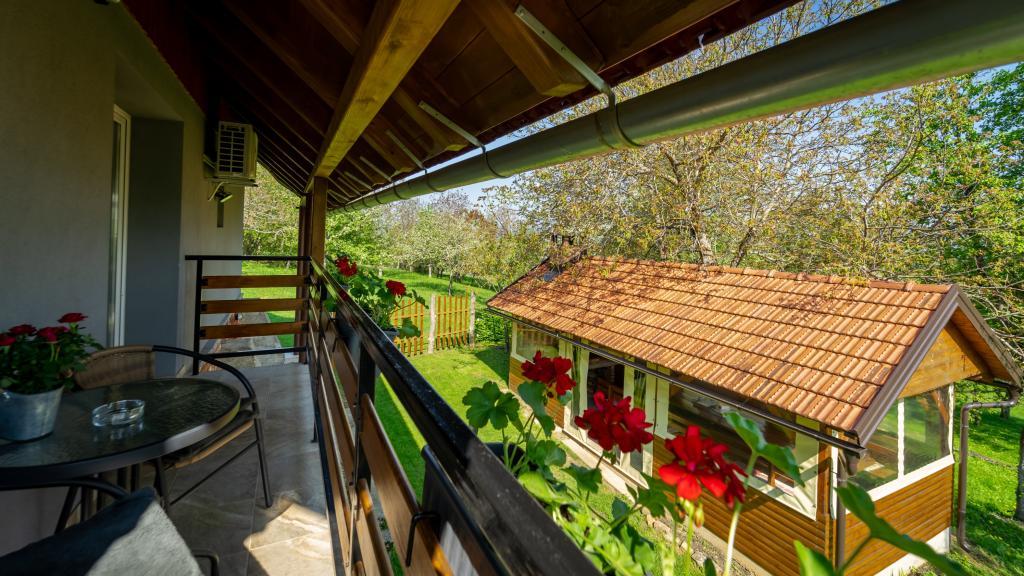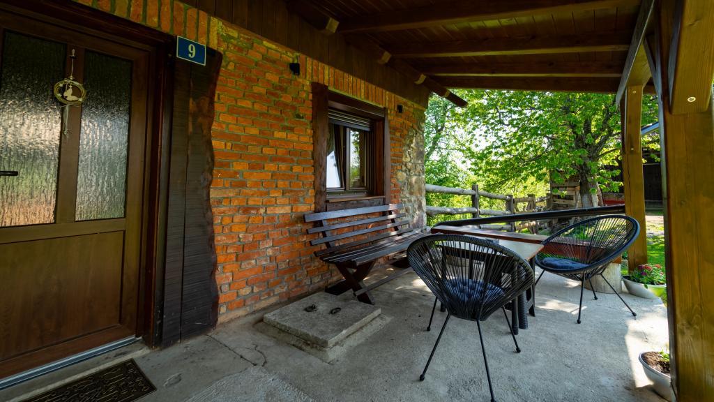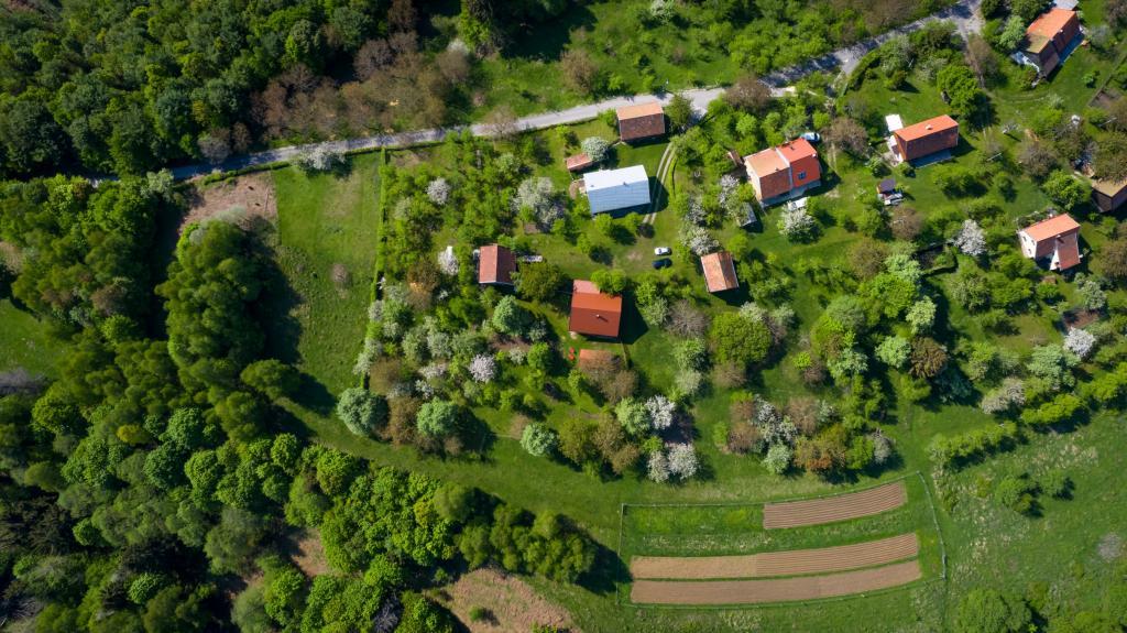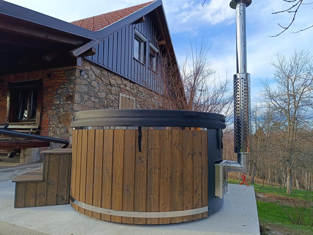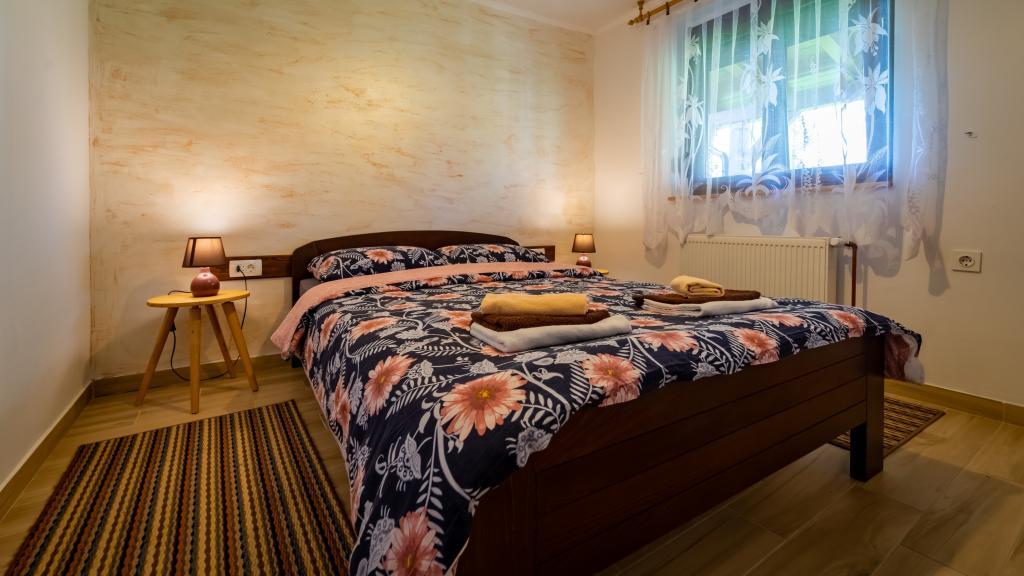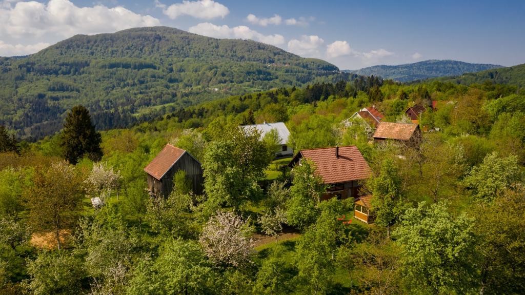 Sleme Skradsko is a small place with a few houses and one inhabitant. The house is surrounded by a large orchard, and contains a garden with seasonal vegetables. An ideal place for a family vacation from everyday obligations or bring friends and enjoy the beautiful space. The house is located in a small place where peace and quiet reign. We are 45 minutes away from the sea by car. During the day you swim in the sea, and at night you sleep in the mountains in the fresh air. Next to the house there is a slope suitable for sledding in the winter months. Behind the house there is a garden gazebo with a fireplace and barbecue accessories (wood, coal). The building consists of two bedrooms, bathroom, kitchen, dining room and living room, corridor, balcony and terrace, and installed central heating. Next to the house there is a smaller facility for socializing, which contains a fireplace, barbecue equipment, oven, skewer, kettle. Large landscaped garden of 3800 m2. In the summer months, the temperature is comfortable for sleeping, and there is also free air conditioning if needed. In the winter months, the facility is equipped with oil-fired central heating controlled from the bed. Wood stove with glass door for a complete atmosphere.