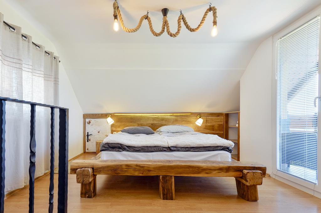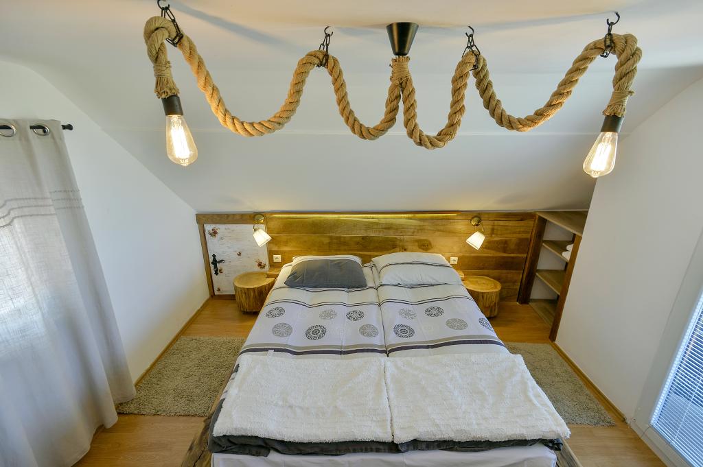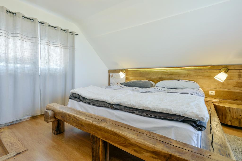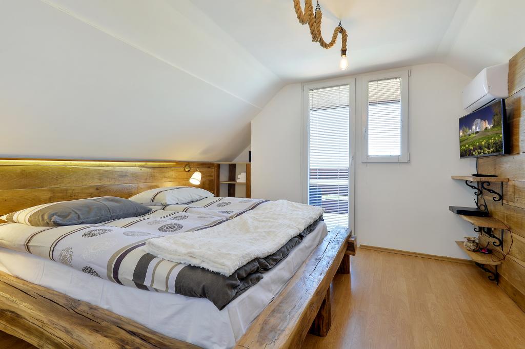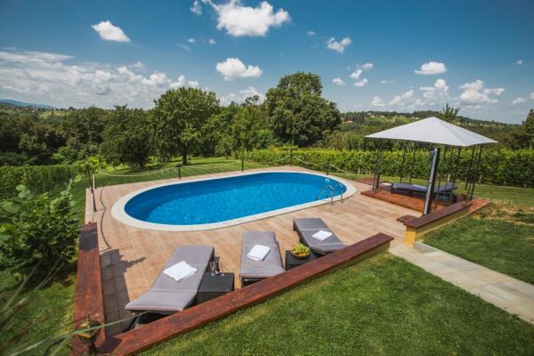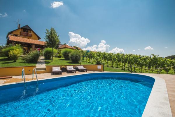 This beautiful holiday home located on a hill, surrounded by meadows and vineyards, will provide you with a pleasant vacation. The house is decorated in an autochthonous style, while an autochthonous wooden hut has been converted into a living room. There are two bedrooms available, one of which is walk-through with a separate external entrance, while a steep staircase leads to the other with the lowest ceiling height of 100 cm. There is also a covered terrace where you can prepare meals on the grill, and right next to it is a swimming pool for refreshment on hot summer days. Visit the city of Varaždin with its many sights.