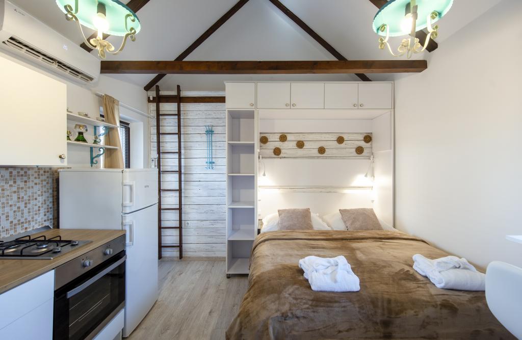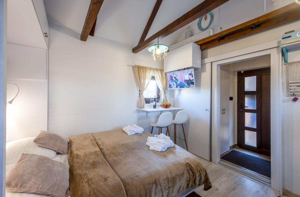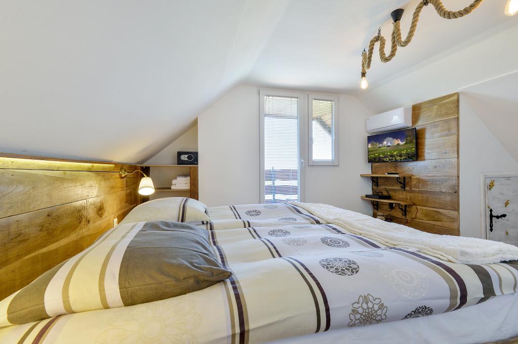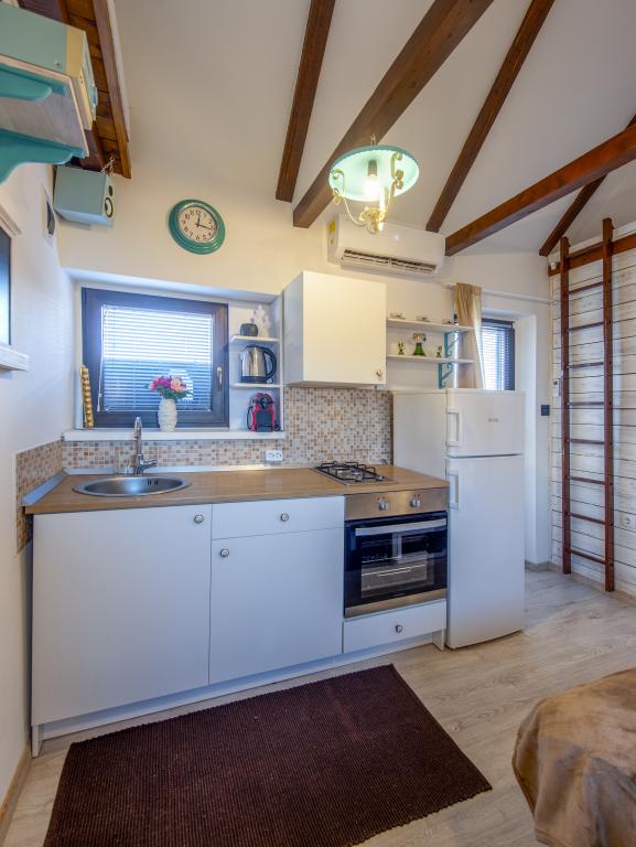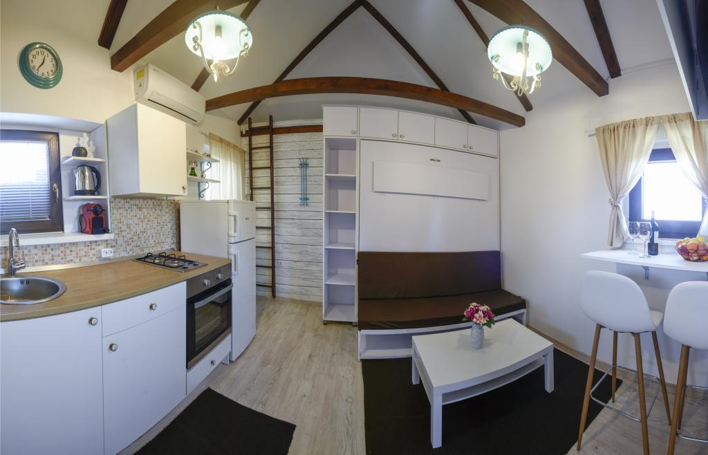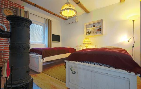 This beautiful holiday home located on a hill, surrounded by meadows and vineyards, will provide you with a pleasant vacation. The house is decorated in an autochthonous style, while an autochthonous wooden hut has been converted into a living room. There are two bedrooms available, one of which is walk-through with a separate external entrance, while a steep staircase leads to the other with the lowest ceiling height of 100 cm. There is also a covered terrace where you can prepare meals on the grill, and right next to it is a swimming pool for refreshment on hot summer days. Visit the city of Varaždin with its many sights.