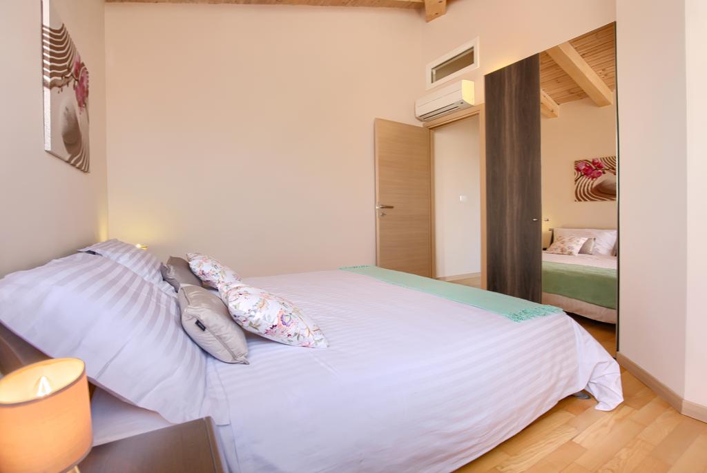 The terraced house in the village of Volme near Banjol offers guests a pleasant and beautiful stay. It is equipped with quality furniture and each room has air conditioning, which provides a pleasant stay on warm summer days (3 air conditioners). The house has two bedrooms for 2 people, two toilets, a kitchen with a living room in which there is a corner sofa bed, very comfortable for 1 person. In one bedroom there is a folding cot. The house also has a courtyard with a barbecue that is used only by guests, and within the building there is a beautiful swimming pool that is also used by the surrounding buildings, mostly weekenders. The sea is only 300m away, and only 3000m is the RT Kamenjak with the most beautiful beaches in Istria. There are many cycling paths in the village, so you can also get to Premantura by bike. For pets, the surcharge is 60e for the entire stay