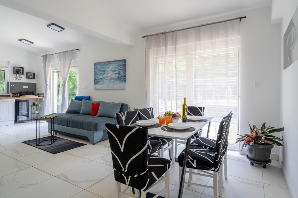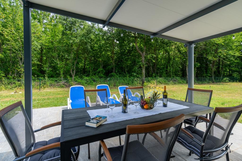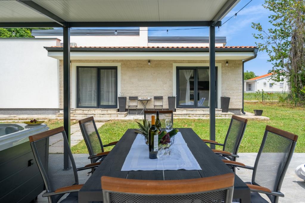 Imagine being woken up by the sun and the birds singing from the surrounding trees, while you relax and enjoy the jacuzzi (massage tub). In complete privacy, sit comfortably on a deck chair and drink your first morning coffee or tea. An ideal location for guests who love relaxation and enjoyment in a green sunny oasis. You are about 10 minutes by car from clean and small beaches. Our guests have a SUP board to use for free. Beautiful newly built holiday home with a large garden of 1300 m2. 2 outdoor terraces for enjoying the sun, a gazebo with shade for enjoyment, jacuzzi, badminton equipment, private free parking in the shade. The house consists of 3 bedrooms (each room air-conditioned), 2 bathrooms and a washing machine, a large air-conditioned living room and a fully equipped kitchen with a dishwasher. You are 20 minutes from Pula airport and 25 minutes from the Roman amphitheater Arena in the center of Pula. The Brijuni National Park and the city of Rovinj are about 30 minutes away