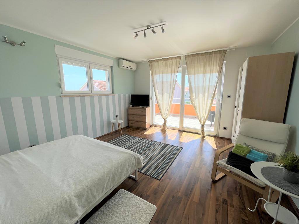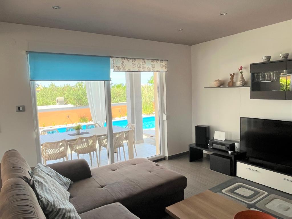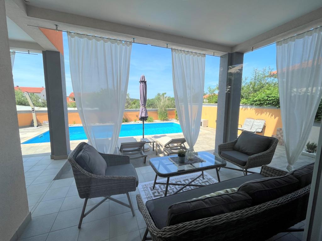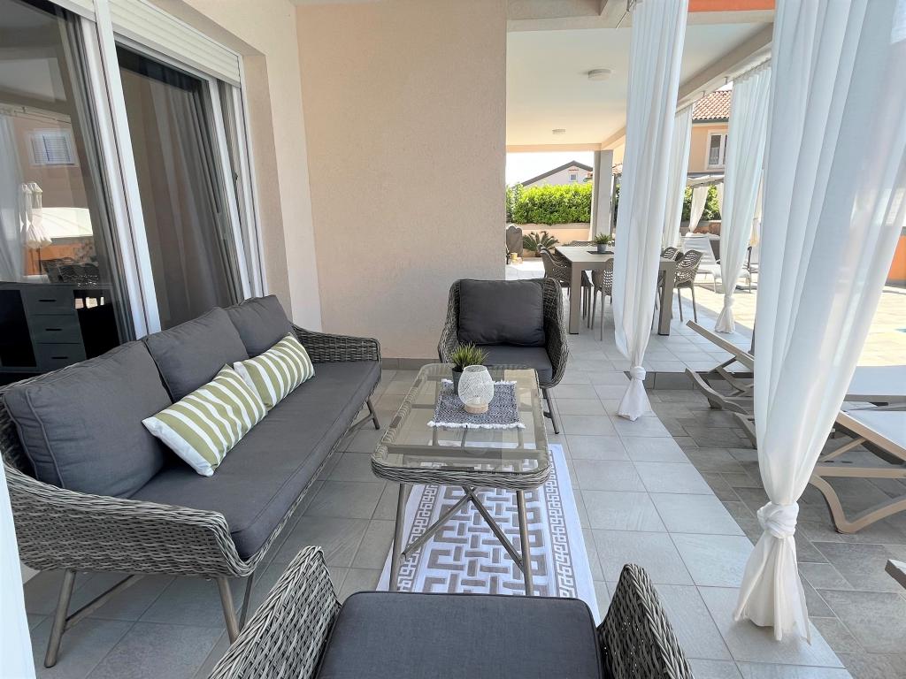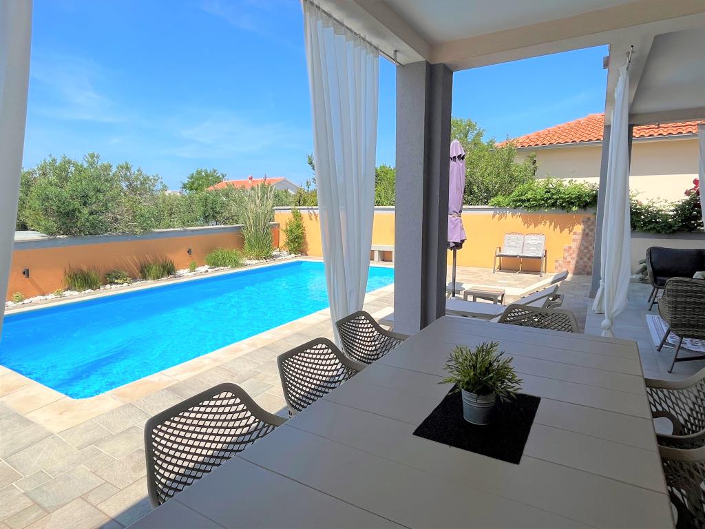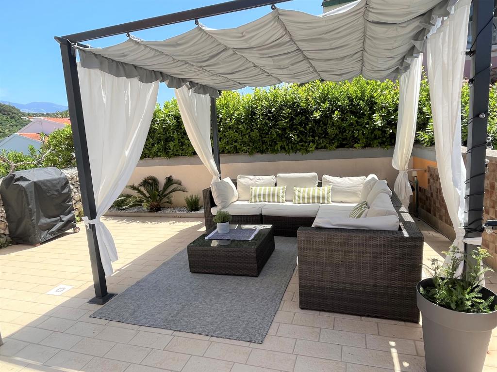 This beautiful villa with a private pool is located on the island of Rab, one of the most beautiful islands in the Adriatic. This villa is located in Barbat, only 80 meters from the beautiful beaches. Barbat is known for its pebble beaches, fishing tradition, excellent restaurants and a small shipyard. This place is a paradise for small boats. The highlight of this great villa is a private garden with a swimming pool, surrounded by greenery. A huge pool measuring 8x4 meters is located in a beautiful garden. The open ground floor offers a living room with dining room and kitchen, from where you have direct access to the pool and covered terrace. . On the ground floor there is also a bedroom with a double bed and its own bathroom, as well as a guest toilet. In the morning you can use direct access to the pool from the bedroom. On the first floor there are 2 bedrooms with bathrooms, and an apartment with kitchen, living room, bedroom and bathroom. All bedrooms have TV and air conditioning. All rooms on the first floor have access to a terrace with a view