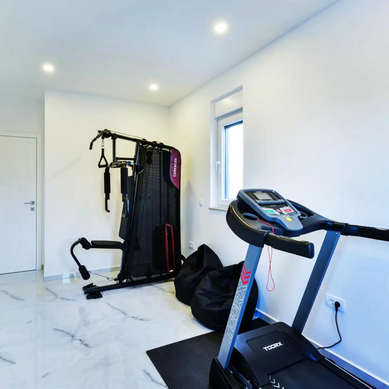 Residential tax is included in price.The villa consists of four luxurious bedrooms, three of which are located on the first floor, each equipped with its own bathroom, air conditioning and access to balconies. The fourth bedroom, also with its own bathroom, is located on the second floor, where there is a beautiful view of the surroundings. On the same floor, guests can enjoy a private sunbathing area. On the ground floor there is a modern living room, kitchen and dining room, creating an open and spacious environment for socializing. In addition, guests can use the gym to keep fit. There is also an additional toilet and laundry room on the ground floor. Villa Jomana offers a combination of comfort, luxury and practicality, making it an ideal place to relax and enjoy the Dalmatian way of life.