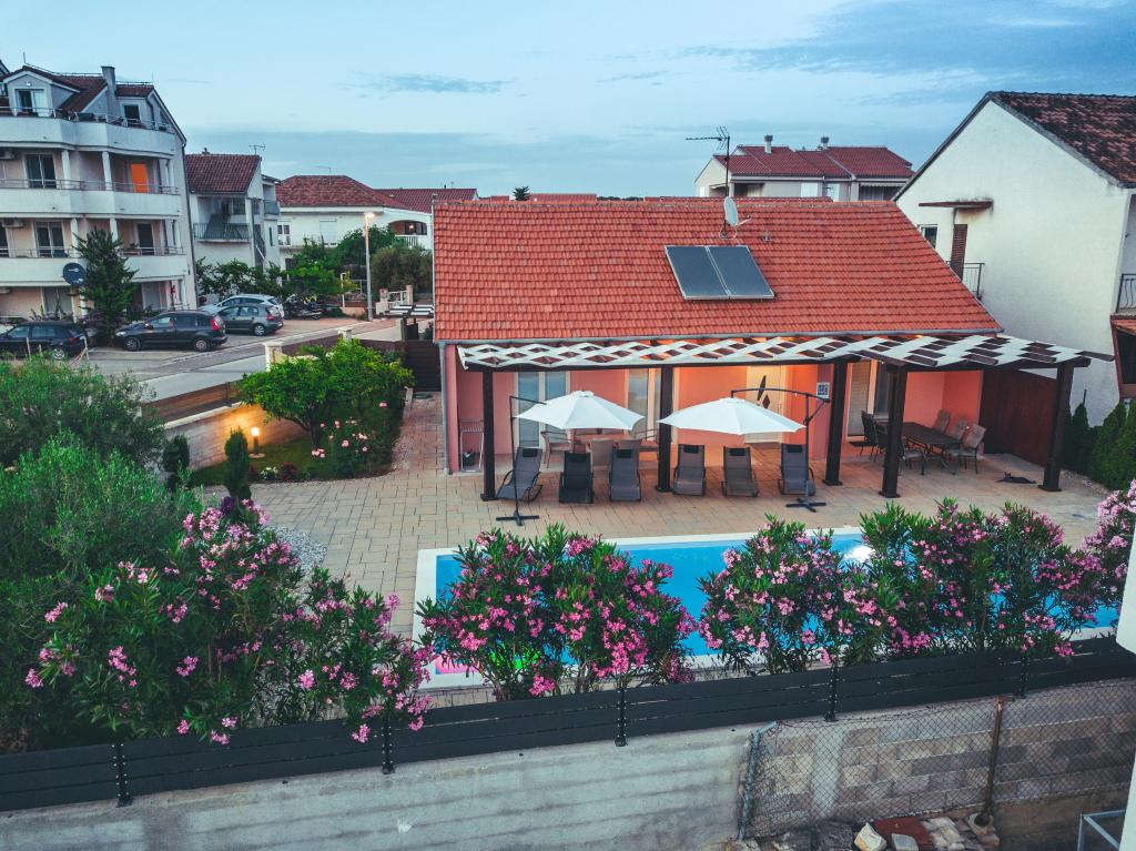 Beautiful holiday house, near center of city of Biograd na Moru. Holiday house is 130 m2 big, with three bedrooms (double bed in each room), vast living room and kitchen. There are also two newly renovated bathrooms. In front of the house there is big yard with swimming pool with fresh water, and outdoor shower next to the pool. Main city beach (sand beach) is about 700 meters away from holiday house. Also the city center is about 800 meters away from house.