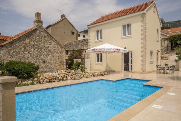 Villa Lemo is newly built house with swimming pool (2016). Situated in a quiet, eastern part of Bol, near the Dominican monastery. Away from the center 300 m and 250m from the beaches. The villa is ideal for families with children or for guests who want to actively spend their holidays. The villa has a private parking, outdoor swimming pool (30m2) with separate whirlpool and a courtyard with barbecue. The total area of the interior of the villa is 100m2 and consists of 2 floors, suitable for 4-6 persons. On the ground floor there is a fully equipped kitchen, dining room, living room (with sofa bed), bathroom and storage. Upstairs are two bedrooms (double bed), each with bathroom (shower). All rooms are air conditioned. The villa has 3 plasma device, wall safe, coffee maker, electric kettle, microwave oven, washing machine, hairdryer, ironing board and iron, Wi-Fi, a dishwasher.