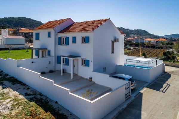 The villa is located in the picturesque village of Nerezisca on the island of Brač, 7 km away from Supetar. . The villa is 120 m2 with a garden and a swimming pool of 8x3 m. The house is exterior of the traditional look, while the interior is modern looking.