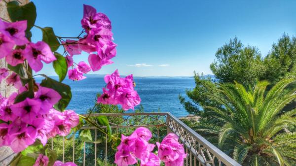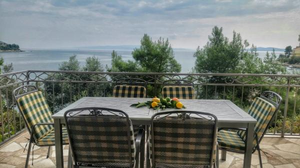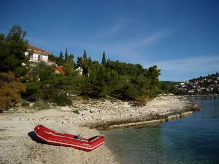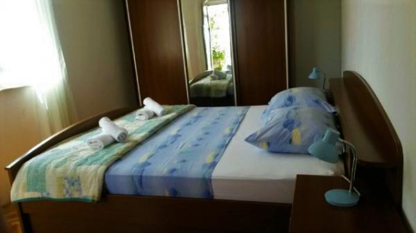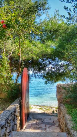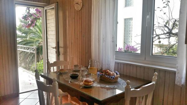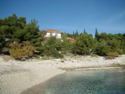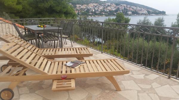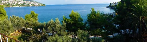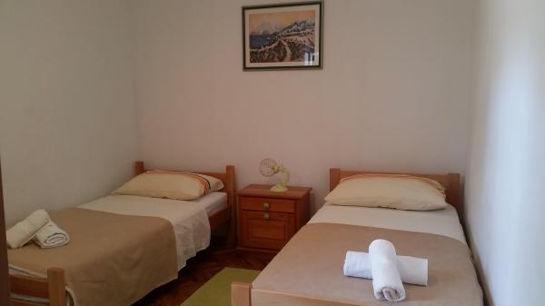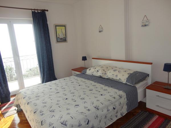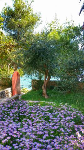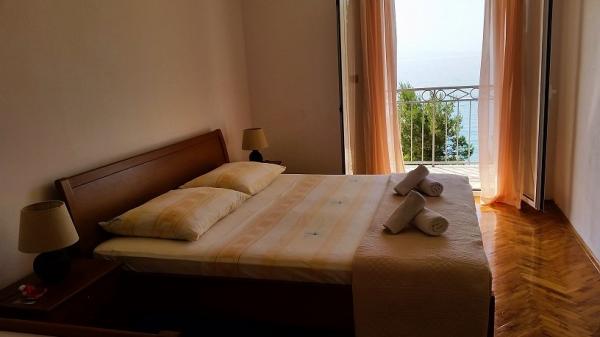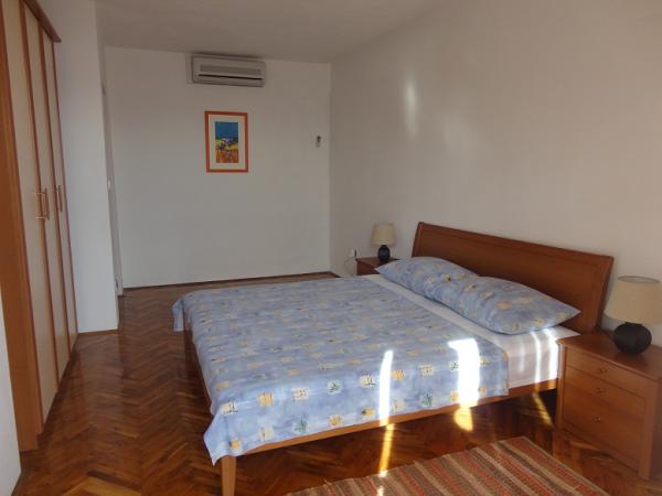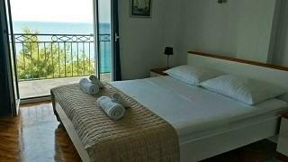 A family house for vacation located in a quiet, elevated position next to the beach, which comes through its own garden decorated with Mediterranean plants. The holiday house consists of a large living room and dining room (30 m2), TV / SAT, air conditioning. Equipped with a three seater, 2 armchairs, (all stretched). From the living room you come out to a huge balcony with beautiful sea and garden views. The fully equipped kitchen is also on the first floor as well as a large bathroom with a toilet and a washing machine. On the 2nd floor there are 4 bedrooms (15m2). Three south-facing bedrooms provide a magnificent view of the open sea and exit to the large terrace (30 m2). All rooms are individually furnished with a French bed (160x200 cm) and are air conditioned. The fourth room is parked and is conceived as a baby with two singles beds and access to its own balcony (4 m2). On this floor there is a large bathroom with toilet. The house has an exterior walled grill and parking on the plot (3-4 cars).