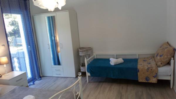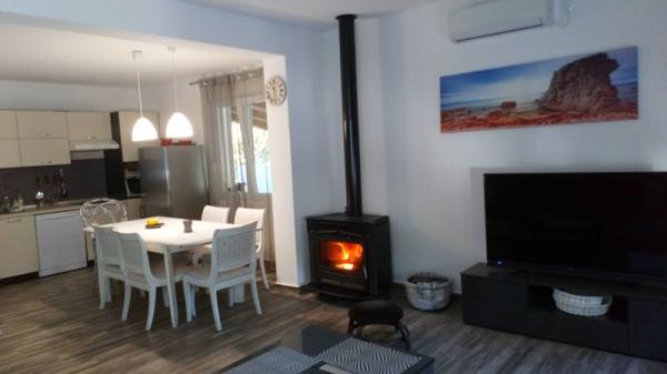 Villa Manta- Crikvenica Croatia has two apartments available. First app. has 100 m2 that offers you two bedrooms, one with one double bed and another room with another double bed, one cot and one single bed and two bathrooms. Large living room with large dresser, pull out set and kitchen. In the kitchen there is a dishwasher, el. ceramic plate, fridge, toaster, microwave, kettle. The rooms are air-conditioned. Down on the ground floor is another app. which offers you a living room with a sofa bed and a kitchen. The passage of the fuses is in the bedroom with double bed and extra bed, possibility of baby bed, bathroom. The rooms are air-conditioned. The outdoor space is equipped with a saltwater swimming pool, there is also a pool with massage nozzles, deck chairs and a shower. Next you have 50 m2 of canopies with barbecue and summer kitchen. I 60 m2 terrace. On the ground floor is a wig machine.