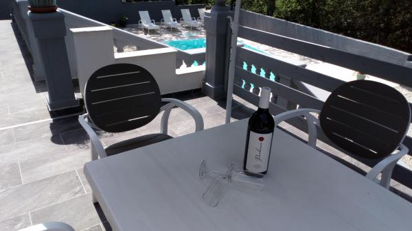 Residential tax is included in price.Every guest waits for a bottle of wine and prosciutto, cheese, olives, biscuits, some fruit and vegetables. In each app. is a wine shop where you can dine the wine from Novi Vinodolski Pavlomir. We offer diving, diving course, boarding excursions. Children's toys are in the building. Hair dryer. makeup sweatshirts Magnifying mirror Detergent for washing machine and container toaster Kettle Microwave oven