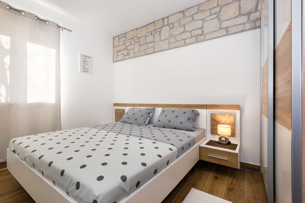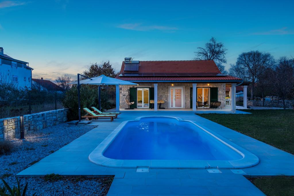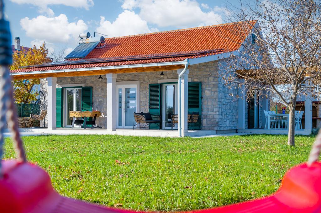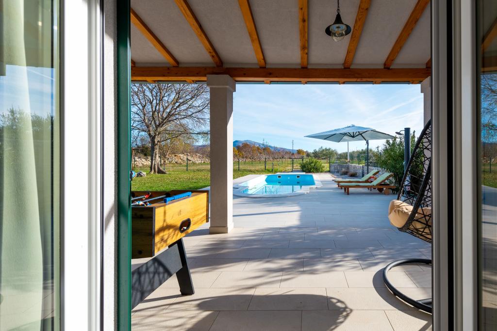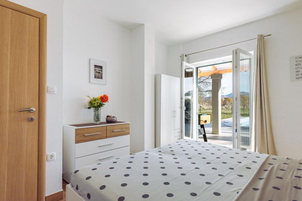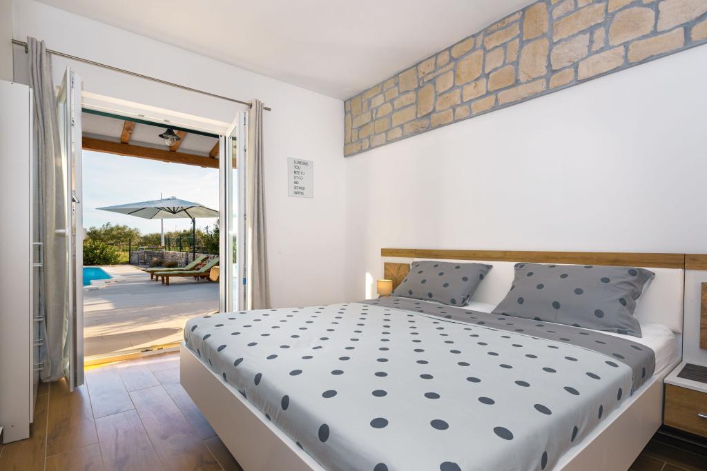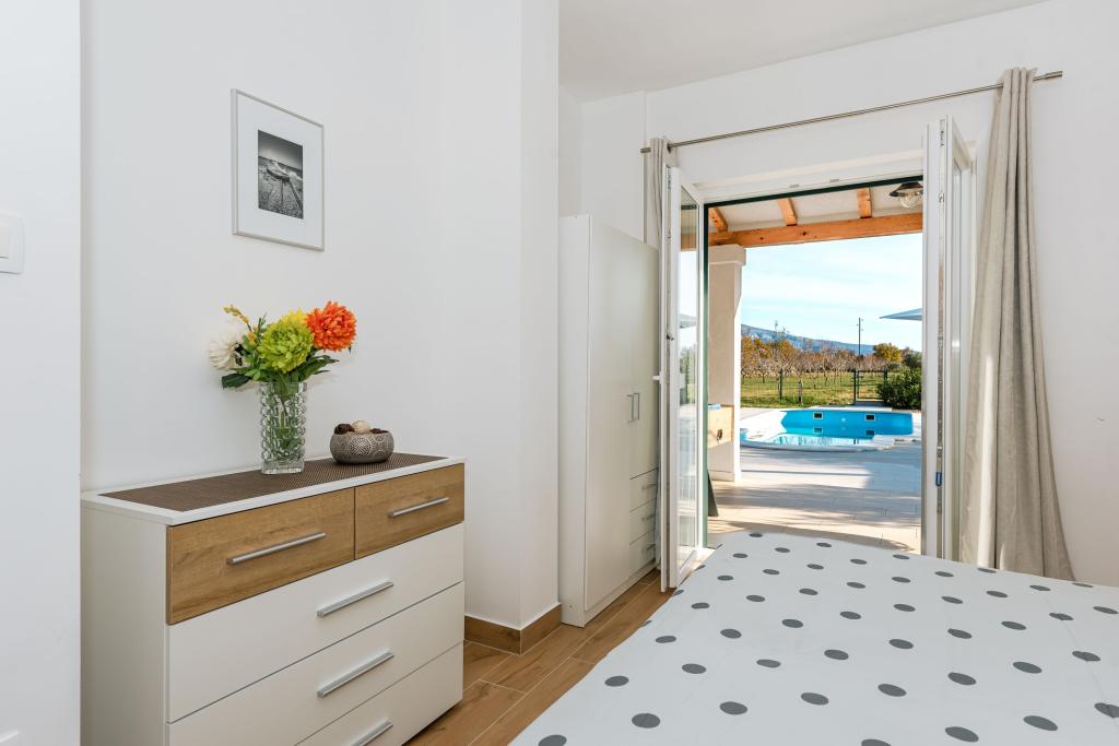 If you want to feel the charms of Dalmatia, enjoy privacy surrounded by greenery far from the everyday crowd, Villa Bajadera is the right place for you. Decorated in a combination of stone, wood and modern motifs, it is ideal for relaxing the mind and body. At only 4 km distance from Krka National Park, cultural monuments and monuments under the protection of UNESCO, you can have fun canoeing or horse riding. Villa Bajadera is newly built and fully equipped with two bedrooms, kitchen and dining room, bathroom and a beautiful terrace with a view of the pool and olive grove. Each room is air-conditioned separately.