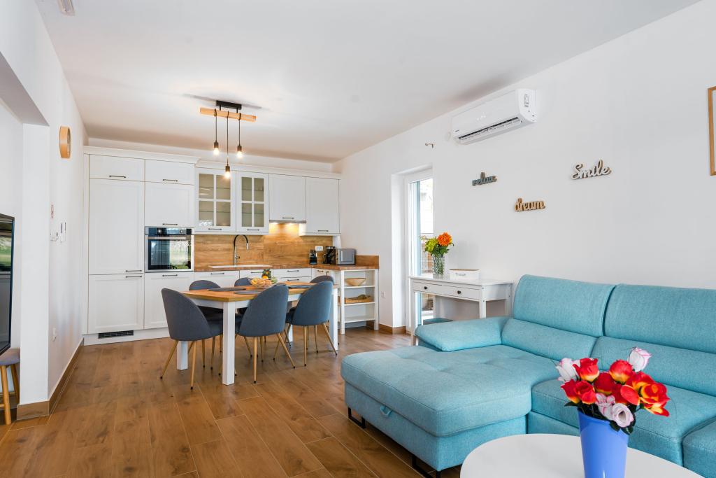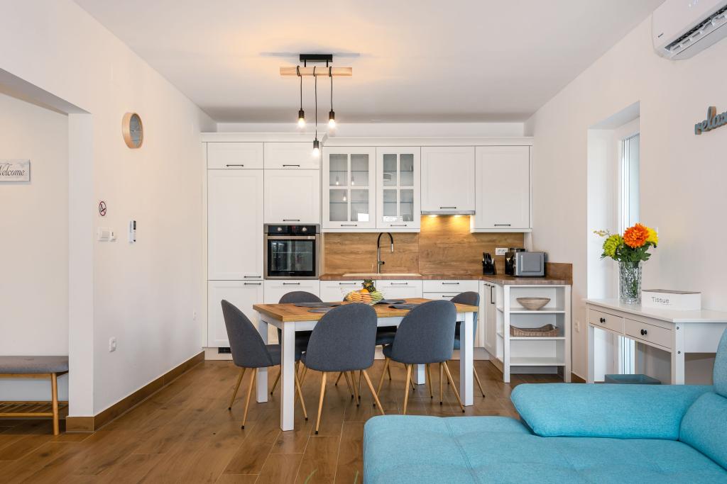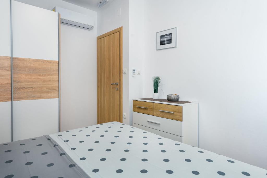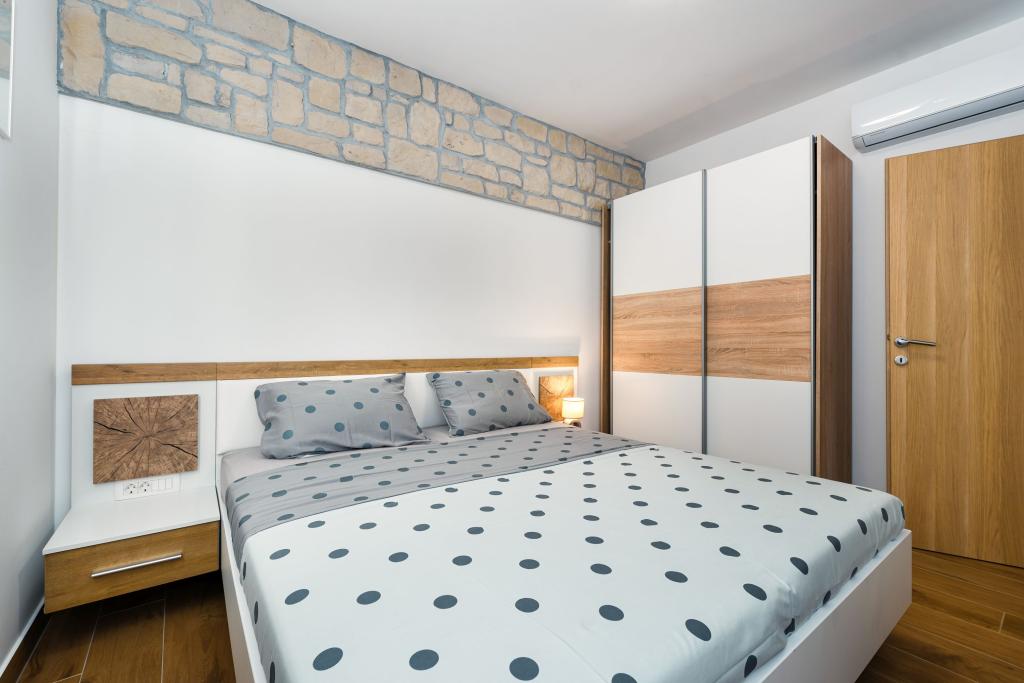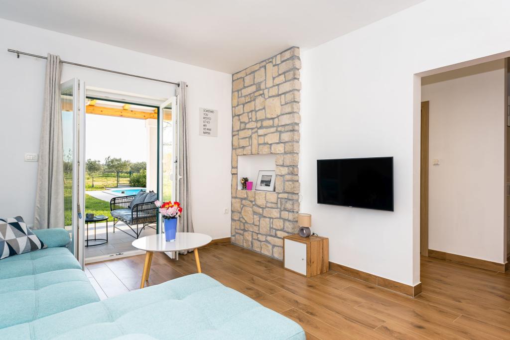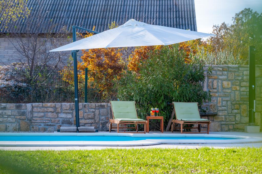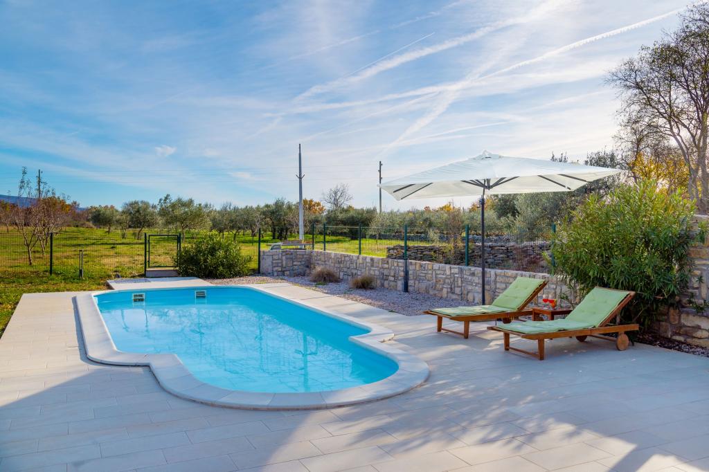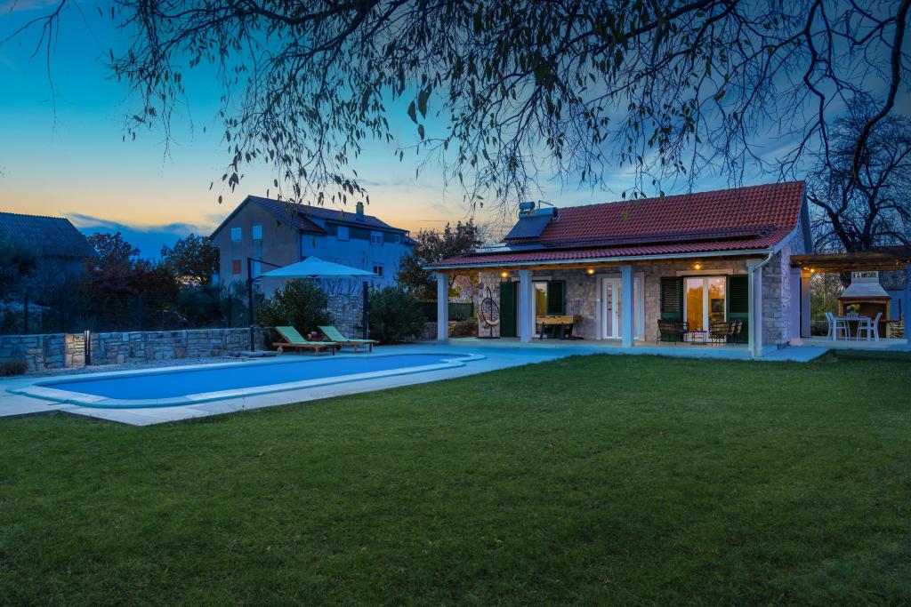 If you want to feel the charms of Dalmatia, enjoy privacy surrounded by greenery far from the everyday crowd, Villa Bajadera is the right place for you. Decorated in a combination of stone, wood and modern motifs, it is ideal for relaxing the mind and body. At only 4 km distance from Krka National Park, cultural monuments and monuments under the protection of UNESCO, you can have fun canoeing or horse riding. Villa Bajadera is newly built and fully equipped with two bedrooms, kitchen and dining room, bathroom and a beautiful terrace with a view of the pool and olive grove. Each room is air-conditioned separately.