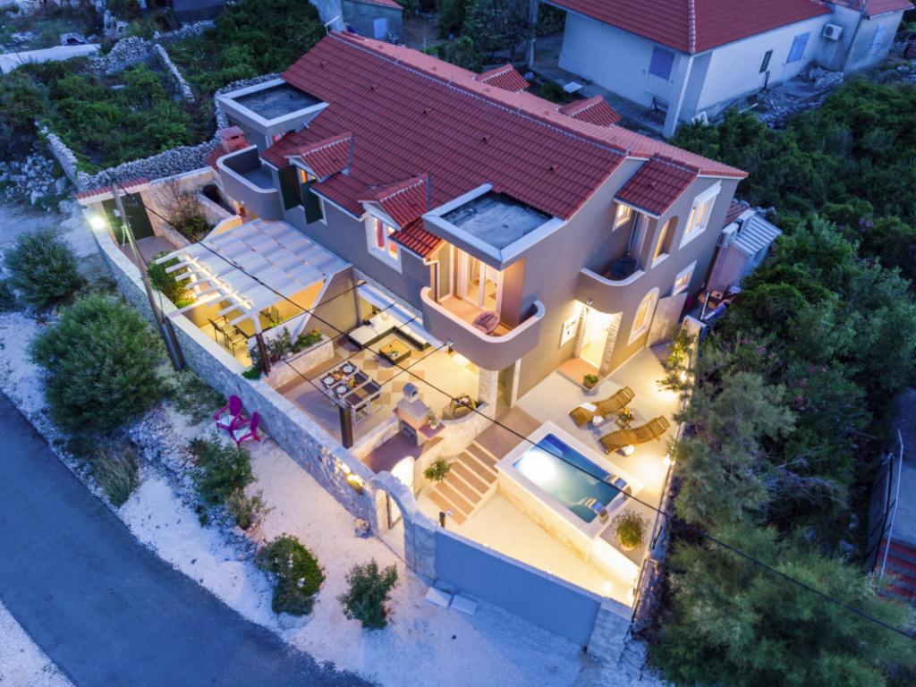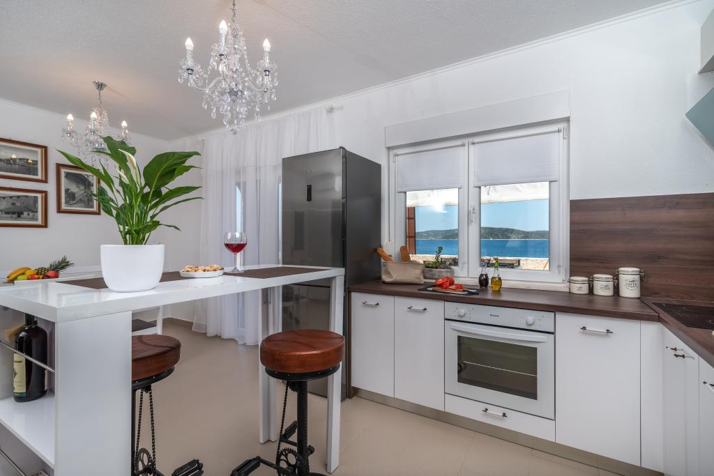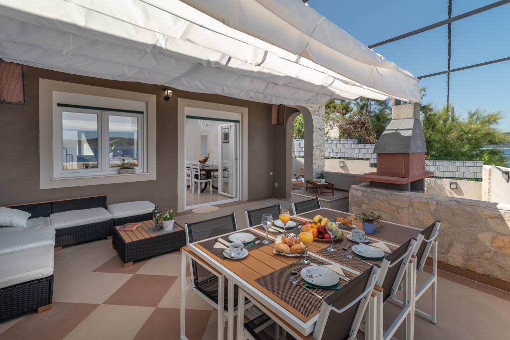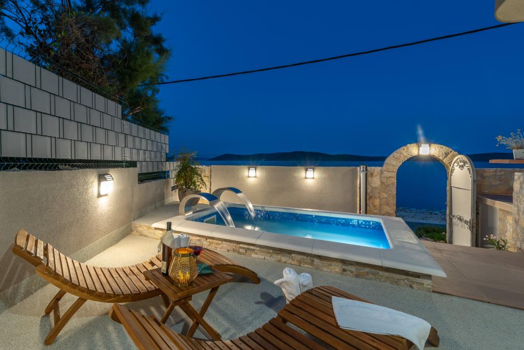 Villa Insula Ventum is a holiday house located on the island of Drvenik Mali near Trogir. There is a ferry to the island in both directions several times a day. The house is located by the sea, offers a fully equipped kitchen, 2 bathrooms, living room and 3 bedrooms with queen size beds (180x200cm). Guests have at their disposal a large terrace with barbecue, dining set and corner seating area. In the yard there is a small pool overlooking the sea.