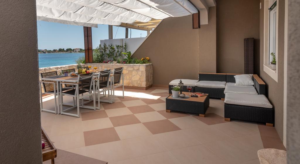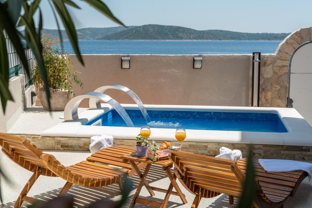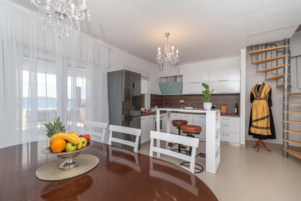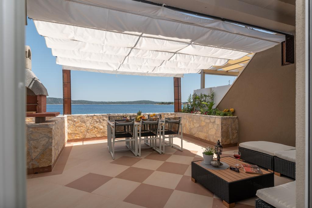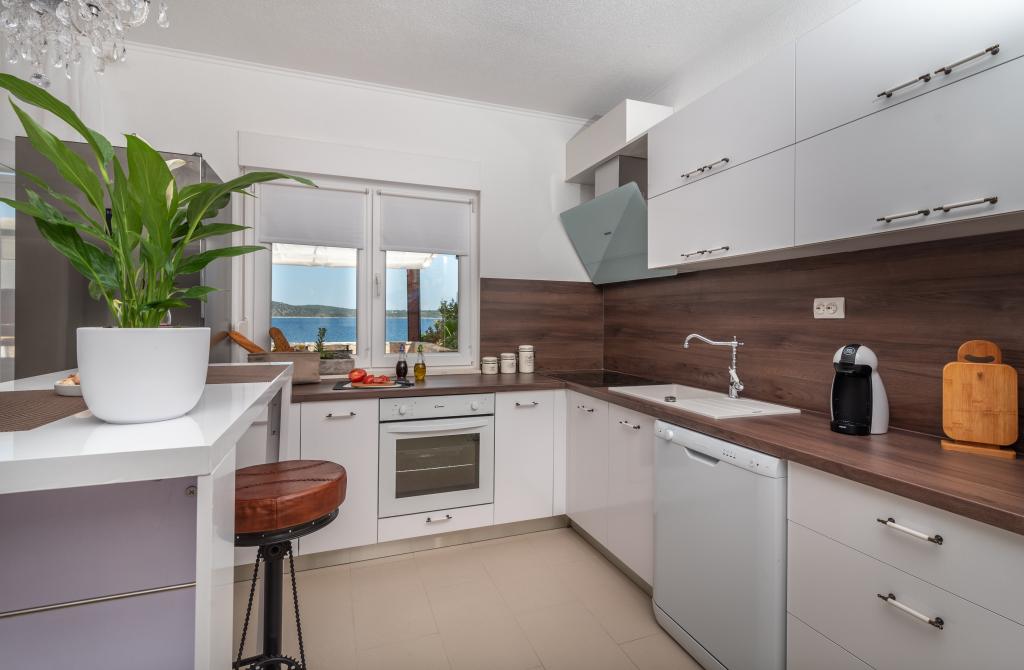 Villa Insula Ventum is a holiday house located on the island of Drvenik Mali near Trogir. There is a ferry to the island in both directions several times a day. The house is located by the sea, offers a fully equipped kitchen, 2 bathrooms, living room and 3 bedrooms with queen size beds (180x200cm). Guests have at their disposal a large terrace with barbecue, dining set and corner seating area. In the yard there is a small pool overlooking the sea.