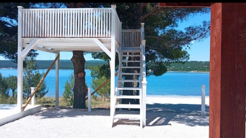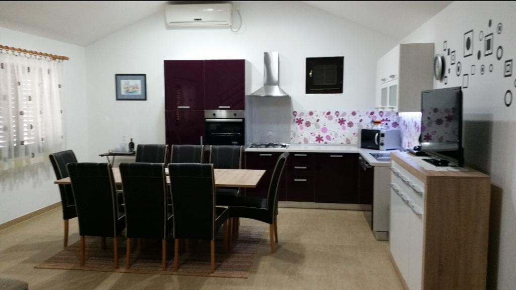 Holiday home Hana is located in Crna Punta. It is 40 meters from the sea and the beach. It consists of a living room, kitchen and dining room, four bedrooms and two bathrooms. The house has 4 air conditioners, an outdoor shower and a barbecue. It also has two garages and a parking space within the fenced yard. The house has two terraces and garden furniture and deck chairs. The owners of the house live at a different address and it is fully available to guests. In addition, guests have access to a free pedal boat and wifi. Crna Punta is located in the Karin Bay, 40 km from Zadar. It is near the Paklenica National Park and the Zrmanja River.