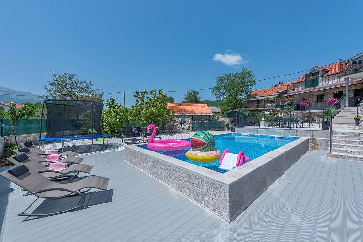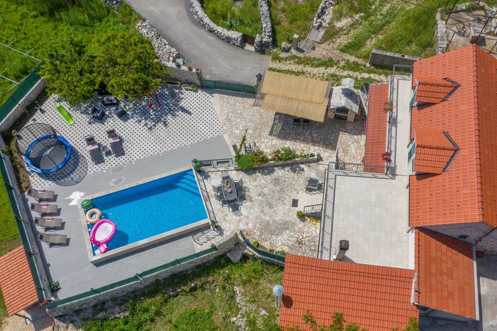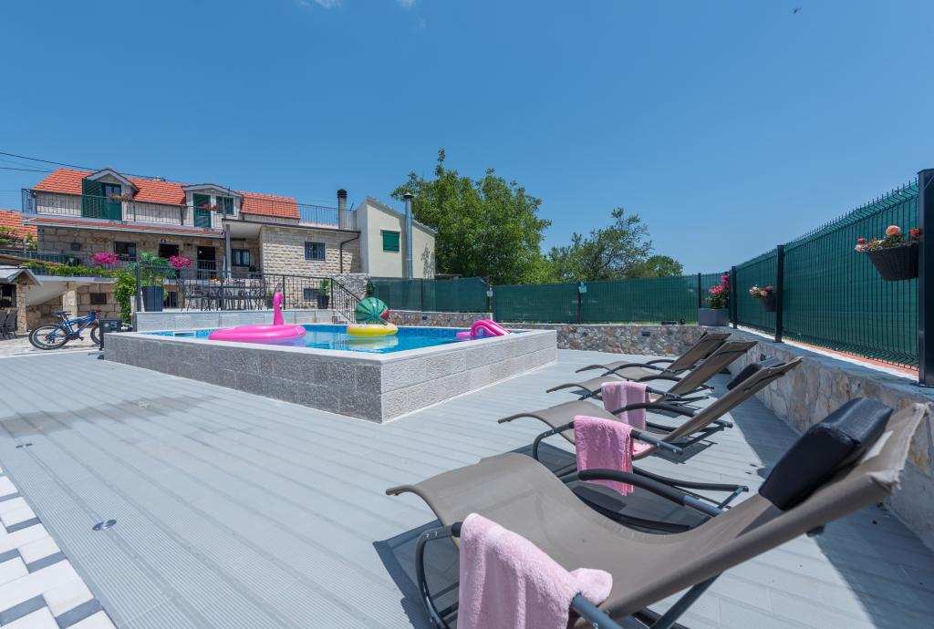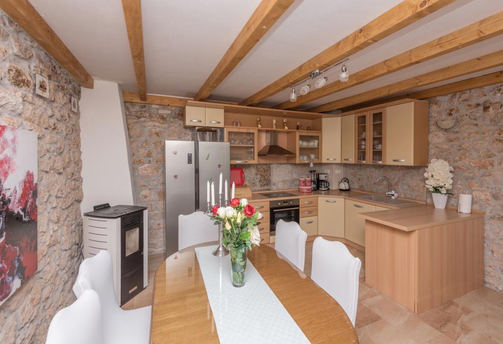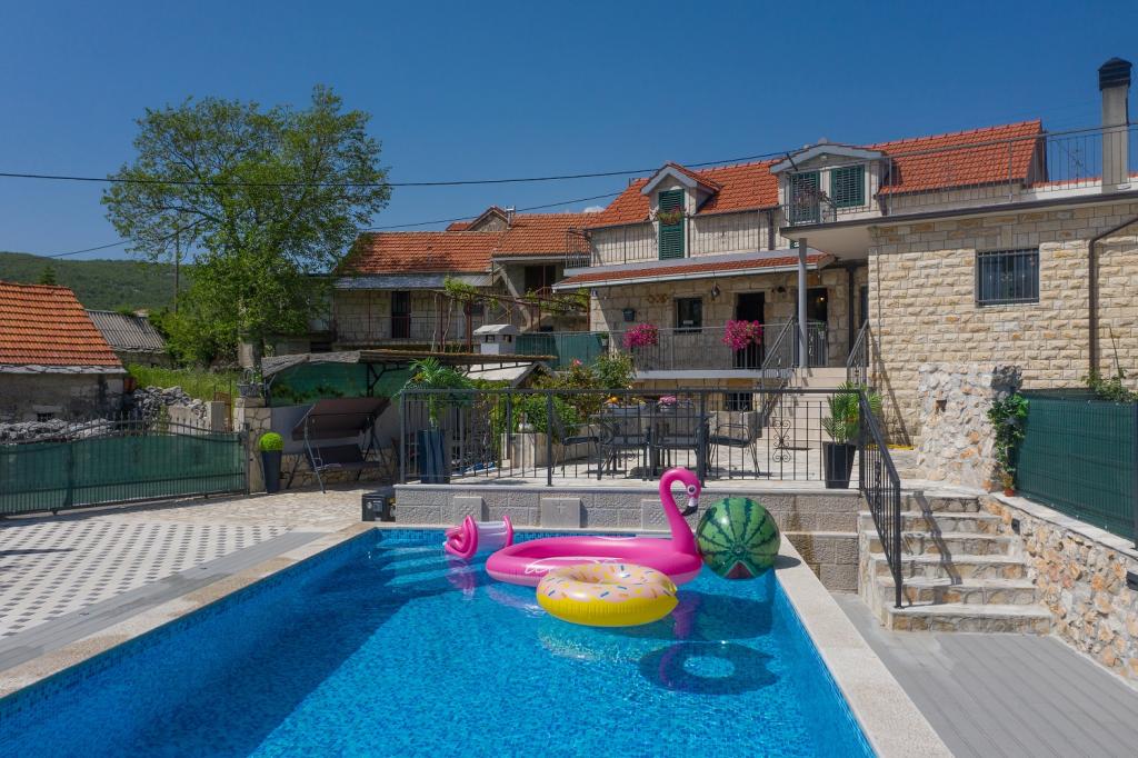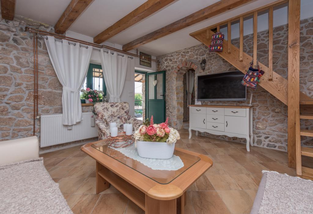 Beautifully decorated holiday house Stipanovi Dvori with pool in the Dalmatian hinterland, surrounded by greenery, natural plants and animals. It is located approximately 25-30 minutes drive from the Makarska Riviera. It is surrounded by natural beauties that offer their magnificent riches (wells, rocks, various plants, roads over 100 years old and more ..) The house consists of two floors and an attic. On the ground floor there is a bathroom and a tavern with a fireplace. On the first floor there is a large kitchen with living room and on the third floor there are two bedrooms, a bathroom and a large terrace overlooking the mountain Biokovo. The house is equipped with modern technology (WiFI, smart TV, bedrooms with TV, satellite programs). I wish everyone a warm, pleasant and pleasant stay!