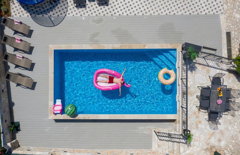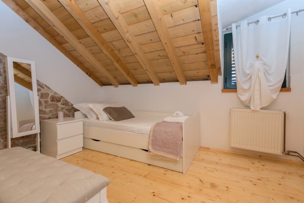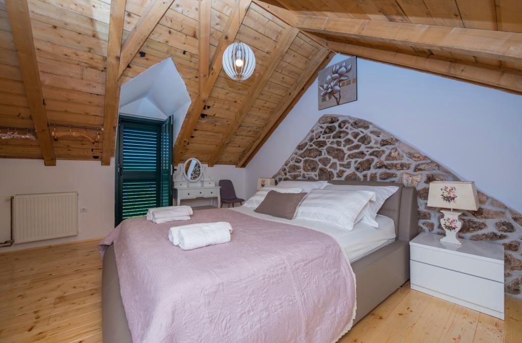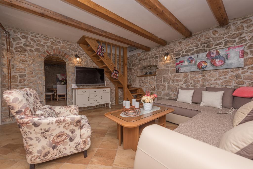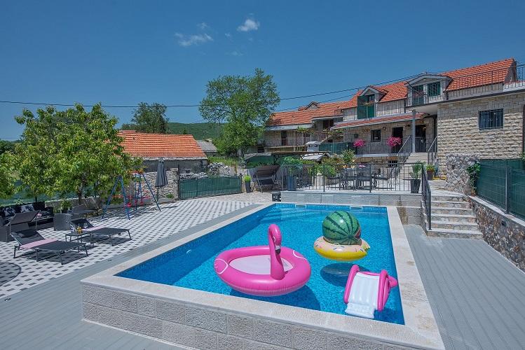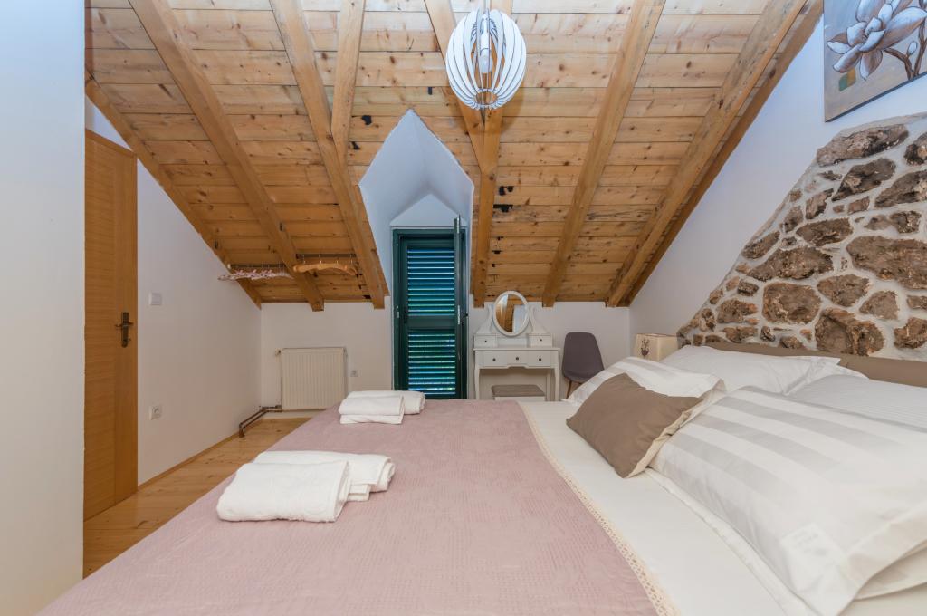 Beautifully decorated holiday house Stipanovi Dvori with pool in the Dalmatian hinterland, surrounded by greenery, natural plants and animals. It is located approximately 25-30 minutes drive from the Makarska Riviera. It is surrounded by natural beauties that offer their magnificent riches (wells, rocks, various plants, roads over 100 years old and more ..) The house consists of two floors and an attic. On the ground floor there is a bathroom and a tavern with a fireplace. On the first floor there is a large kitchen with living room and on the third floor there are two bedrooms, a bathroom and a large terrace overlooking the mountain Biokovo. The house is equipped with modern technology (WiFI, smart TV, bedrooms with TV, satellite programs). I wish everyone a warm, pleasant and pleasant stay!