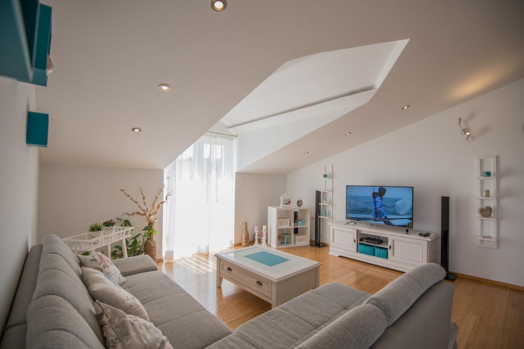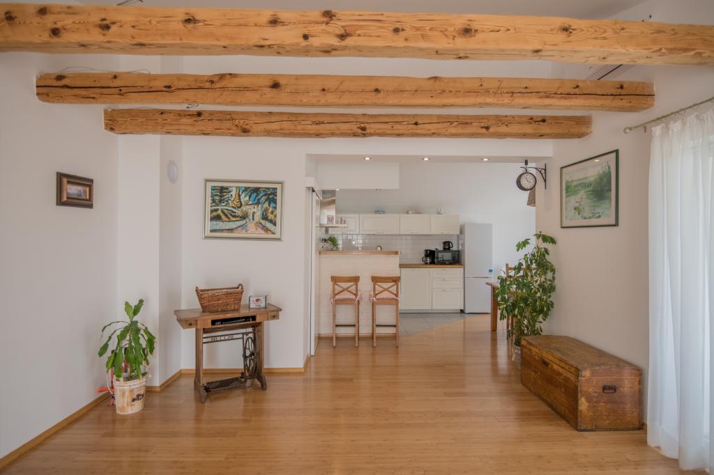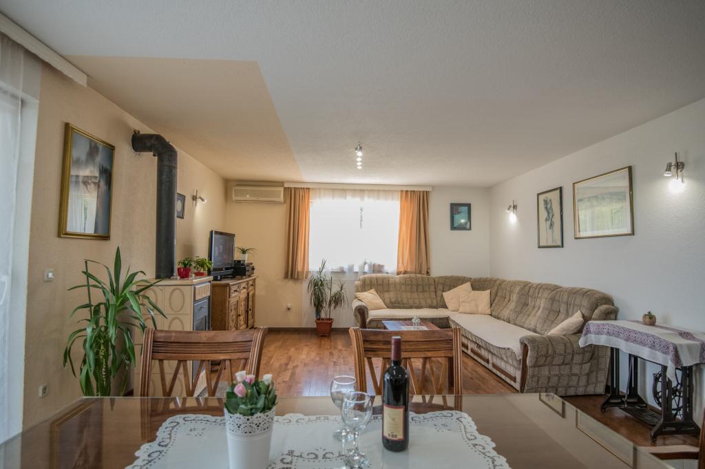 The comfortable holiday home is located on a large (4500 m2) estate in the idyllic landscape of central Dalmatia, near the town of Imotski, which is famous for its Red and Blue lakes. The house consists of two separate residential units that are modernly designed and furnished. One unit is located on the ground floor and consists of three rooms, a living room, a kitchen, a bathroom, a toilet and a veranda. The second unit is located in the attic with two bedrooms, a living room, a kitchen, a bathroom and a large terrace. The lowest ceiling height of the upper floor is 200 cm in the living room. They are connected by an external staircase. The terrace offers a view of the town of Imotski, which is famous for its Red and Blue lakes. On the south side of the house there is a large swimming pool, barbecue and children's playground. Makarska Riviera is 15 minutes away by car, and Imotski is 5 km away. Grubine can offer you a typical holiday in Dalmatia. This area is located near the coast of the Makarska Riviera, which is by far the most popular in Dalmatia.