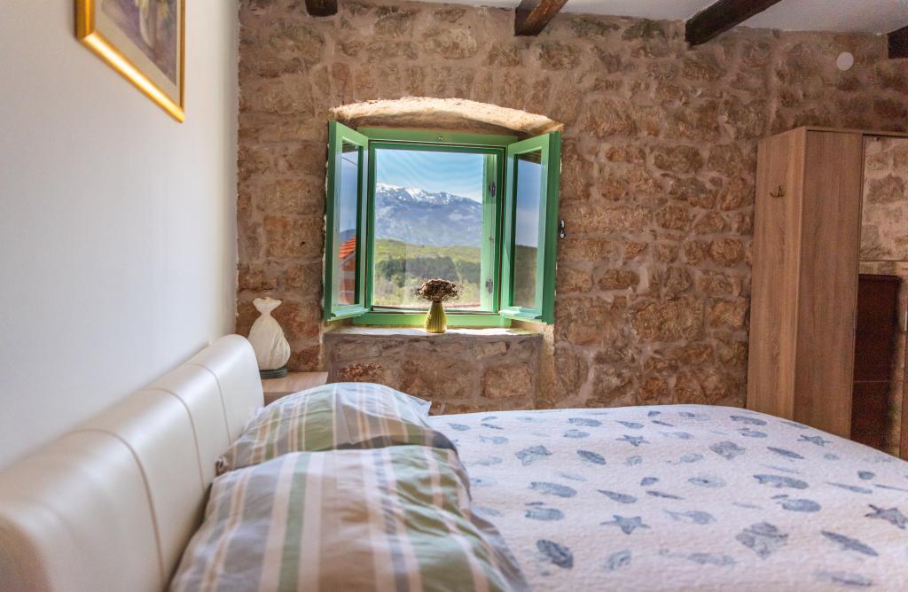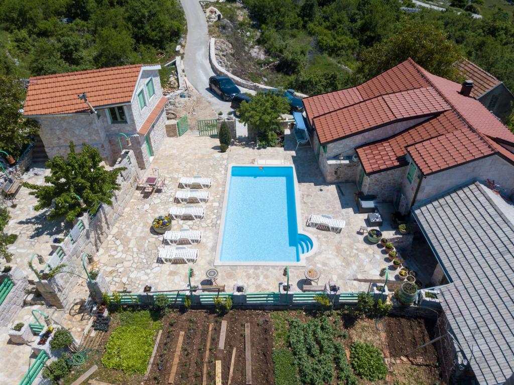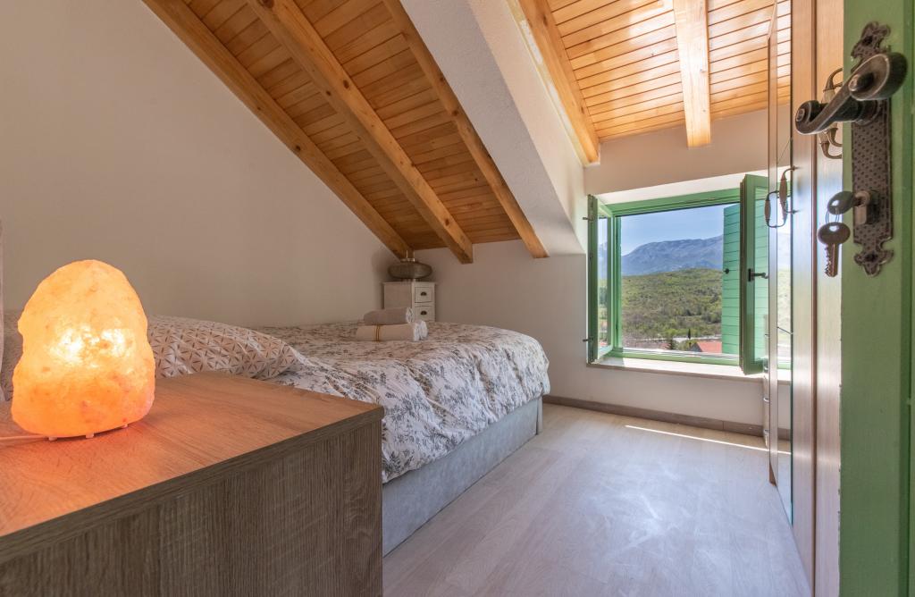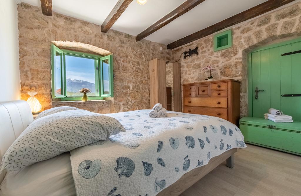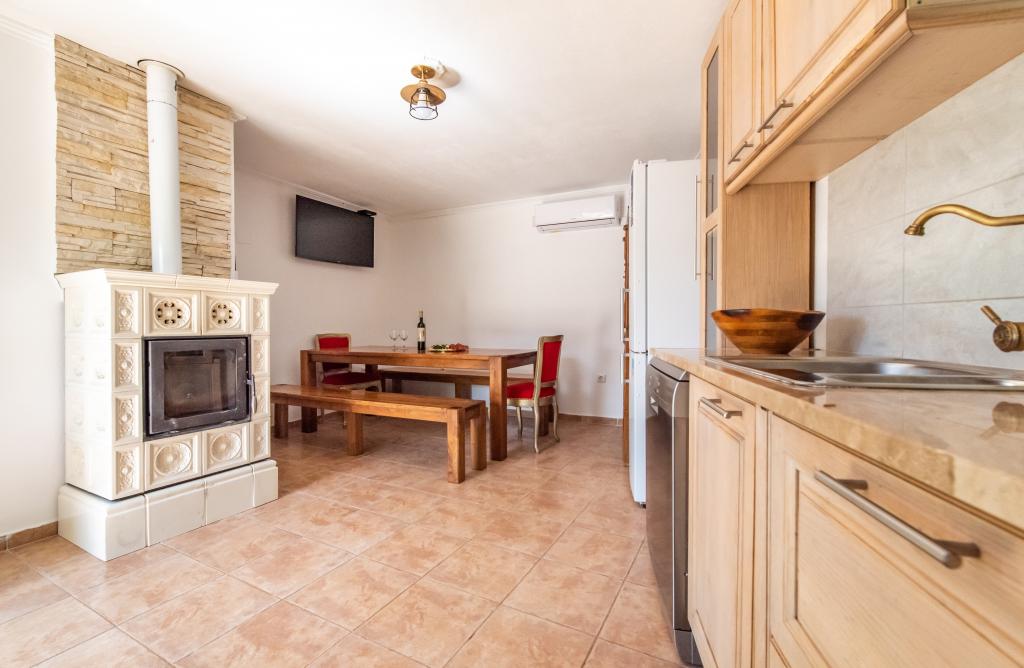 Villa Pristinus is a newly restored, beautiful 18th century estate that stands on the slops of Mountain Biokovo, 15 kilometers north of Makarska. Set at the end of a private road, with a outdoor swimming pool surrounded by lush vegetation and well maintained garden, you can enjoy yourself with the utmost privacy. The property offers 5 air-conditioned bedrooms with 4.5 bathrooms. The main villa is a 2 story white stone house with a 300 years old huge authentic konoba which provides a built- in indoor barbecue, a wood burning cooking stove, a wine bar and tables for about 18 people. Avid cooks will find themselves right at home in the villa’s fully equipped kitchens -3 indoors plus an outdoor traditional fire burning oven, all of them fully furnished with dining seatings. On the ground floor, there are 2 bedrooms with Queen sized double bed, 1 bedroom with 2 single beds and 2 separated bathrooms. Plus another suite with a queen sized bed and a bathroom. On the upper floor, is the open plan kitchen with breakfast island, living and lounge area with a beautiful fireplace and stunning view of Mountain Biokovo. It has a double bed bedroom and a bathroom. The property is beautifully furnished with antique furnitures. Some rooms are still stood with the 300 y