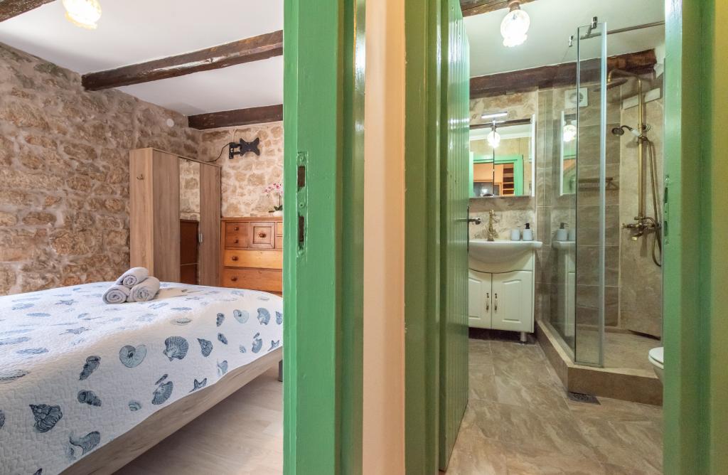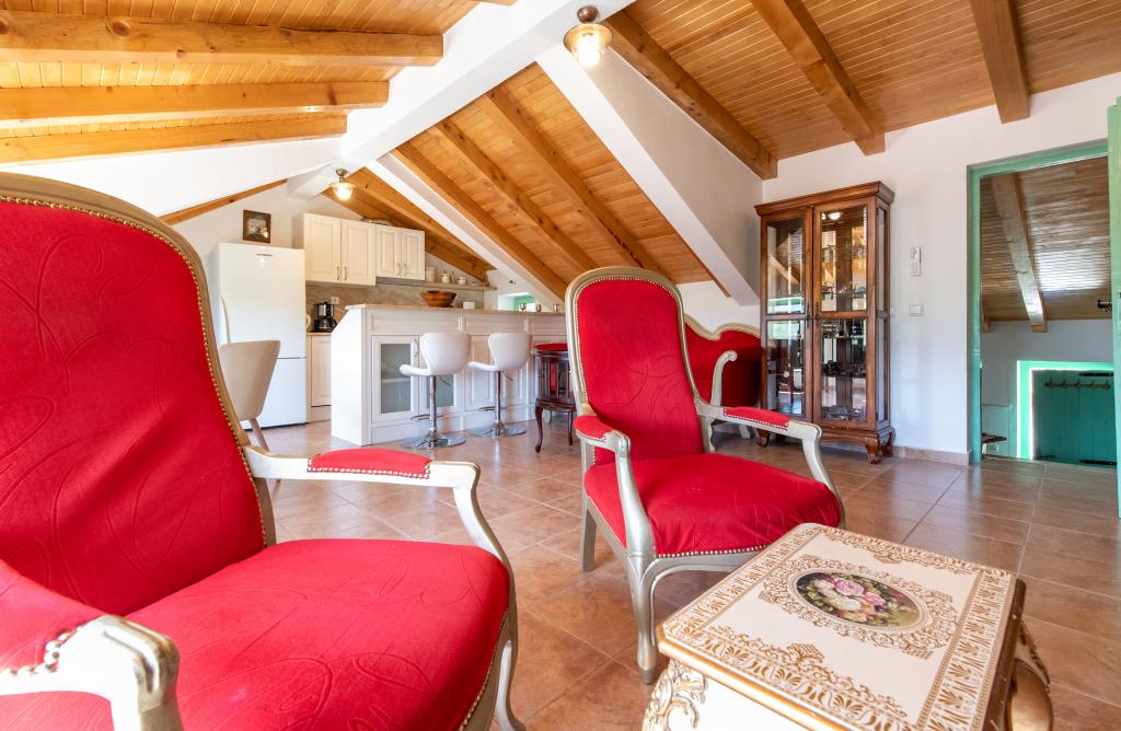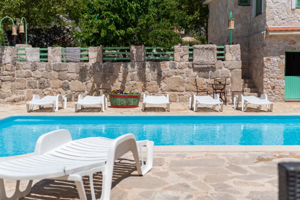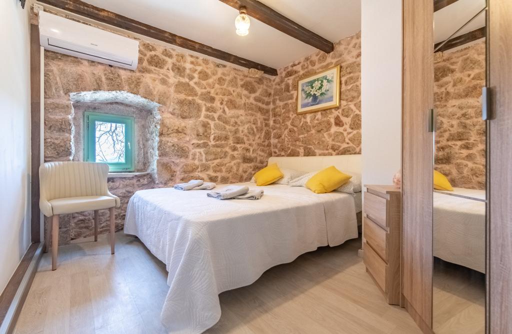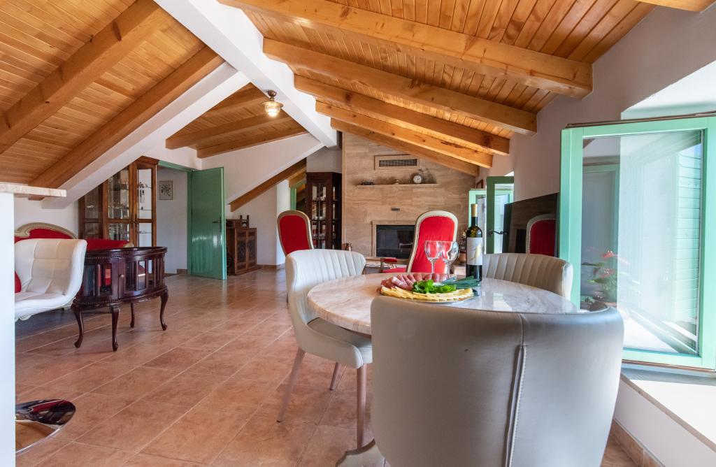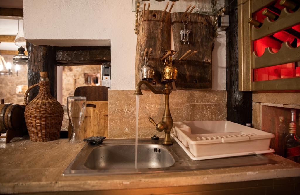 Villa Pristinus is a newly restored, beautiful 18th century estate that stands on the slops of Mountain Biokovo, 15 kilometers north of Makarska. Set at the end of a private road, with a outdoor swimming pool surrounded by lush vegetation and well maintained garden, you can enjoy yourself with the utmost privacy. The property offers 5 air-conditioned bedrooms with 4.5 bathrooms. The main villa is a 2 story white stone house with a 300 years old huge authentic konoba which provides a built- in indoor barbecue, a wood burning cooking stove, a wine bar and tables for about 18 people. Avid cooks will find themselves right at home in the villa’s fully equipped kitchens -3 indoors plus an outdoor traditional fire burning oven, all of them fully furnished with dining seatings. On the ground floor, there are 2 bedrooms with Queen sized double bed, 1 bedroom with 2 single beds and 2 separated bathrooms. Plus another suite with a queen sized bed and a bathroom. On the upper floor, is the open plan kitchen with breakfast island, living and lounge area with a beautiful fireplace and stunning view of Mountain Biokovo. It has a double bed bedroom and a bathroom. The property is beautifully furnished with antique furnitures. Some rooms are still stood with the 300 y