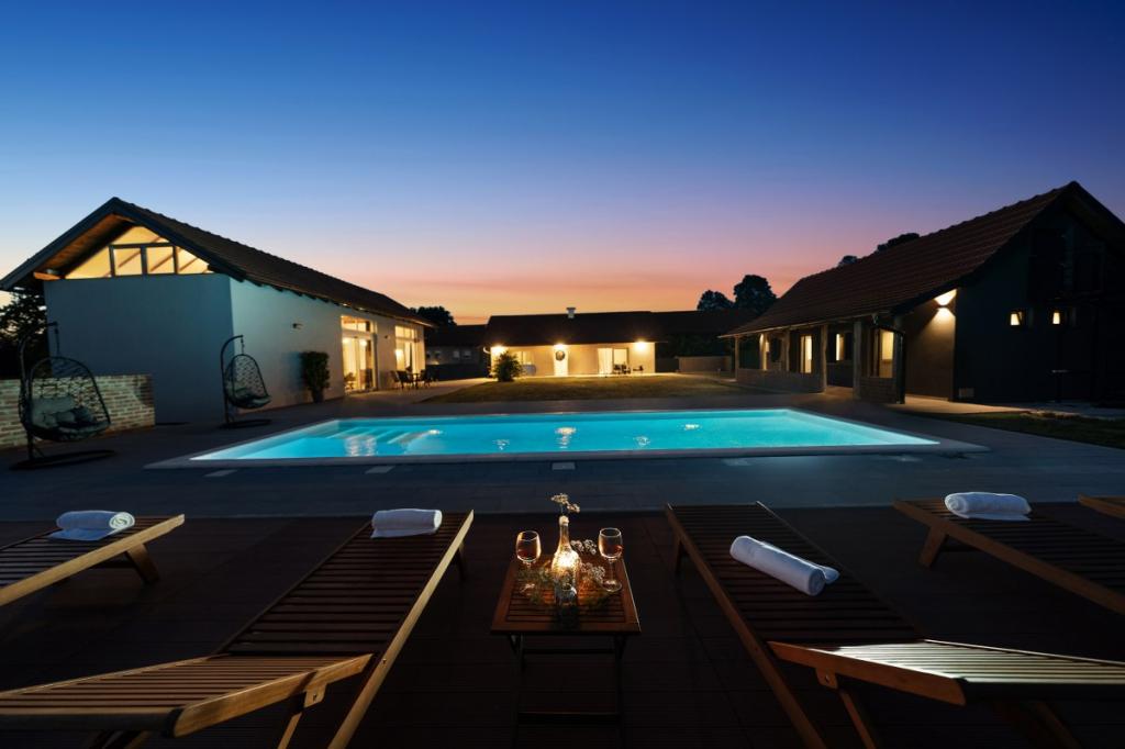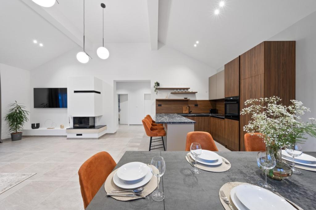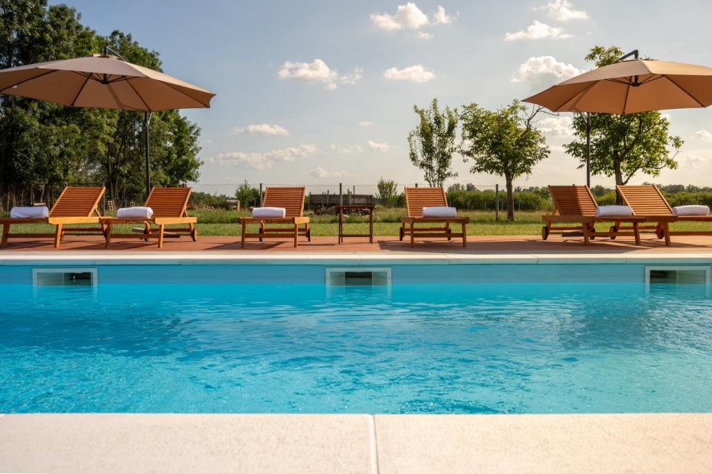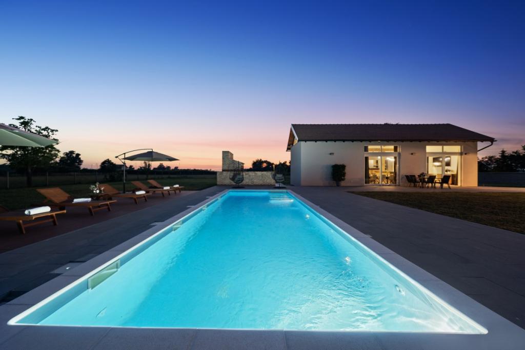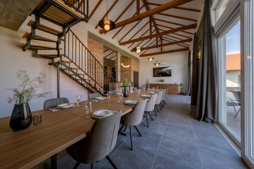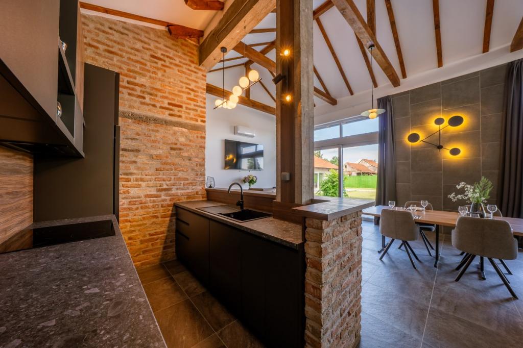 Zelena Oaza is a modernly decorated property with a swimming pool with 3 houses - 2 holiday houses and 1 party house, ideal for a family vacation or a get-together with friends. The maximum number of beds is 8+2. The 4* house consists of 4 double bedrooms, 3 bathrooms, 2 kitchens with all appliances, an outdoor gazebo of 50 m2 with a fishing rod and barbecue equipment and a children's playground. 4 TVs, 6 air conditioners, free parking for 10 cars.