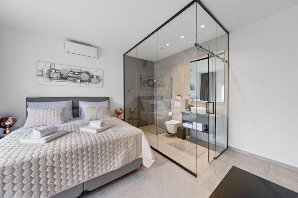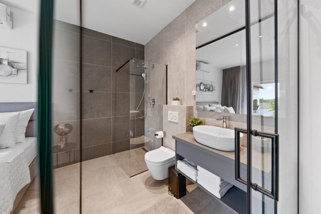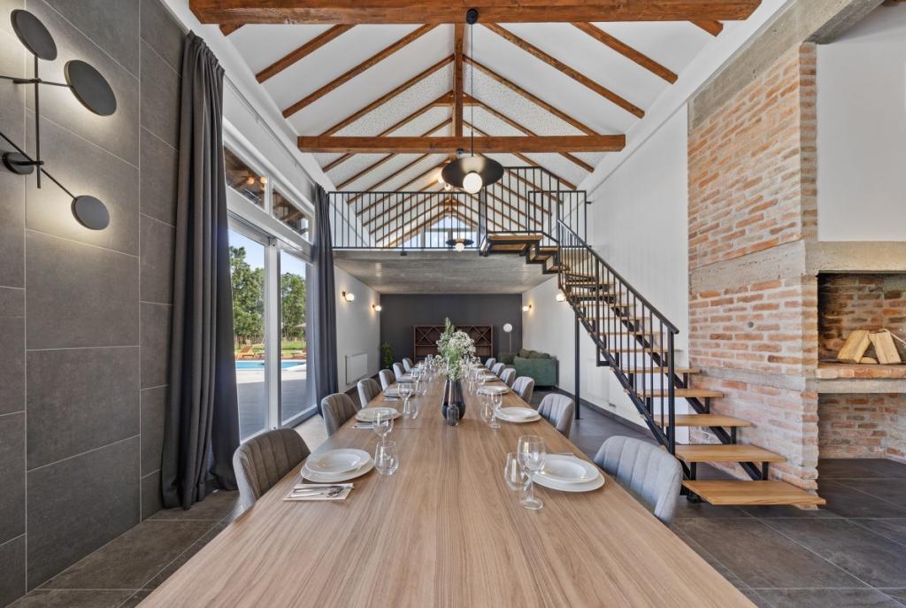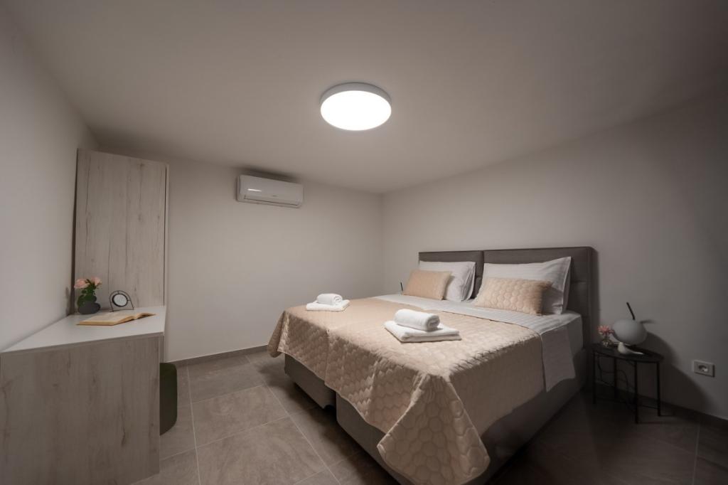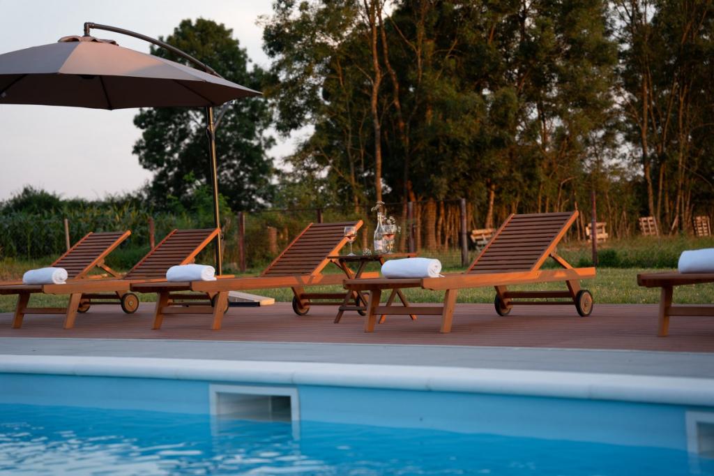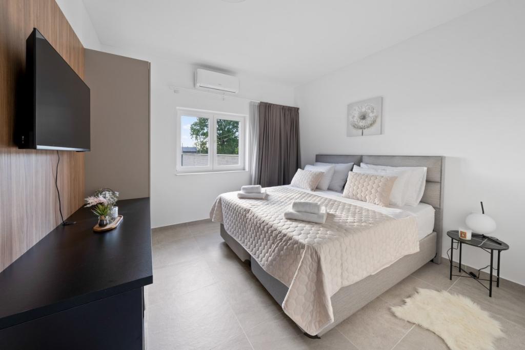 Zelena Oaza is a modernly decorated property with a swimming pool with 3 houses - 2 holiday houses and 1 party house, ideal for a family vacation or a get-together with friends. The maximum number of beds is 8+2. The 4* house consists of 4 double bedrooms, 3 bathrooms, 2 kitchens with all appliances, an outdoor gazebo of 50 m2 with a fishing rod and barbecue equipment and a children's playground. 4 TVs, 6 air conditioners, free parking for 10 cars.