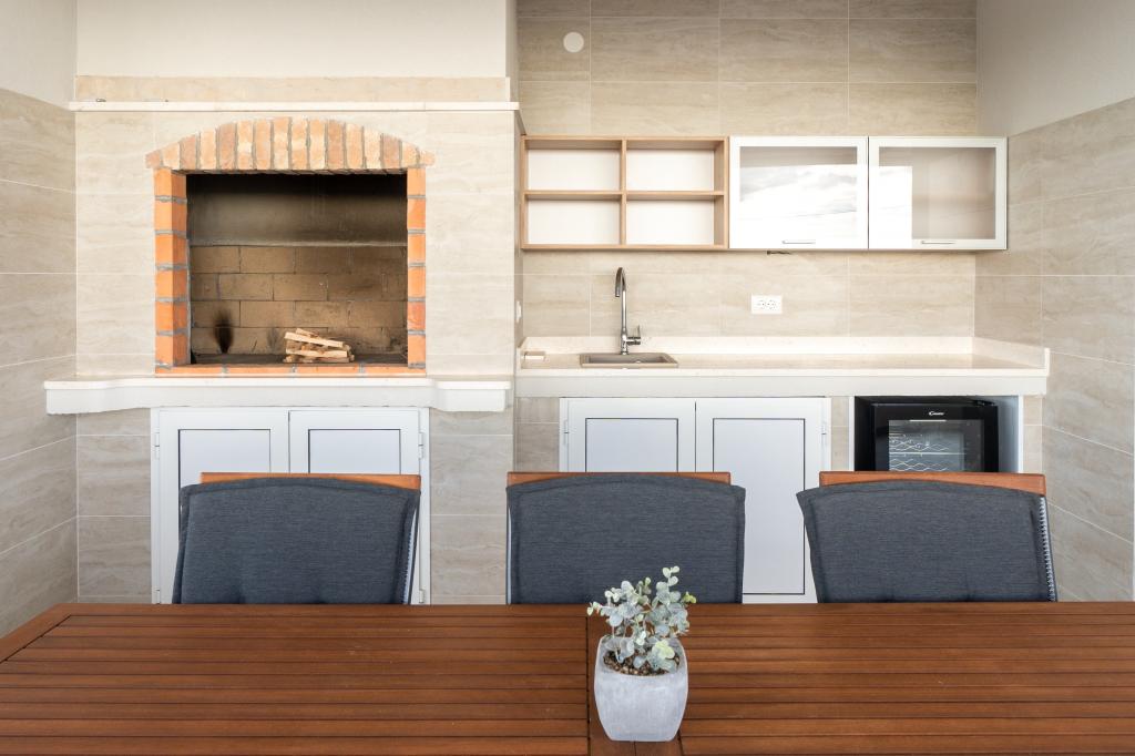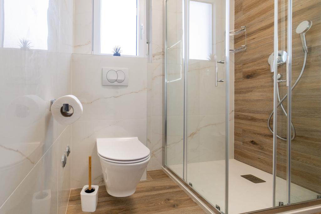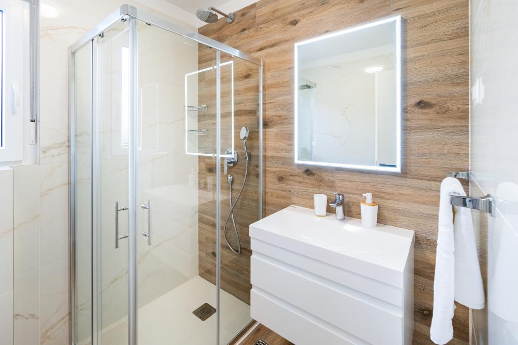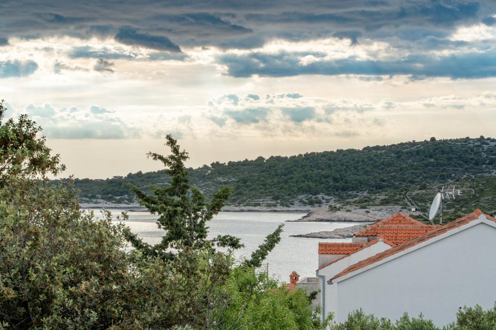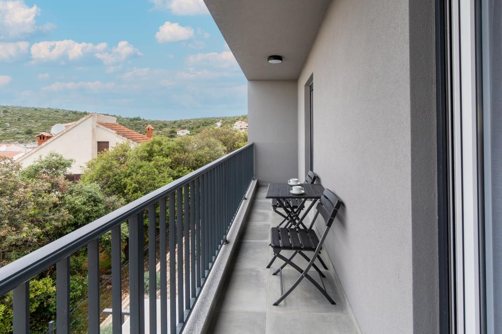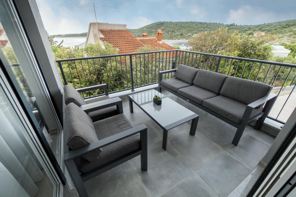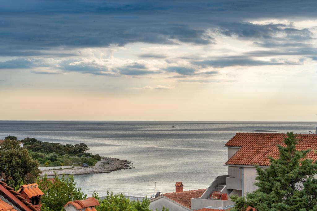 New facility. Enjoy with your family in this modern accommodation with beautiful sunsets and sea view. Quiet neighborhood. Two apartments that are rented as a whole. On the ground floor there is a studio apartment consisting of a kitchen, a bathroom and a room with a double bed, there is also an extra bed in the living room. On the first floor there is a large apartment consisting of a kitchen, a living room, a balcony with garden furniture ideal for morning coffee, two rooms with a double bed and one room with two separate beds that can be connected if necessary. This apartment has two bathrooms, one of which is part of the room and one toilet. On the second floor of the building, there is a large terrace with a view of the entire place and a hydromassage tub for 5 people, deckchairs for sunbathing, barbecue, summer kitchen and table and chairs. There is also a smaller covered facility outside with a barbecue and a table and benches.