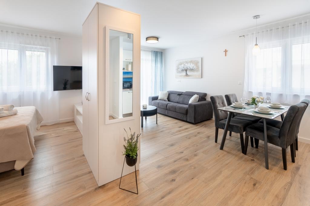 Read moreThe price is shown per night for the entire facility. Please pay a deposit of 30% in advance to the bank account when booking, and the rest of the total price when you arrive at the apartment. For the period of May, June, September and October, the minimum number of nights is 5 nights. For the period of July and August, the minimum number of nights is 7 nights. For 14 or more nights, a 10% discount on the listed price list. Check-in time is from 3:00 p.m., and check-out time is until 10:00 a.m. Please send all inquiries in writing (by sending inquiries via a web form, by email or messages via the WhatsApp or Viber application)