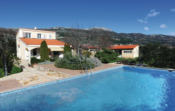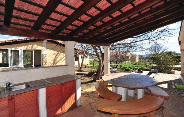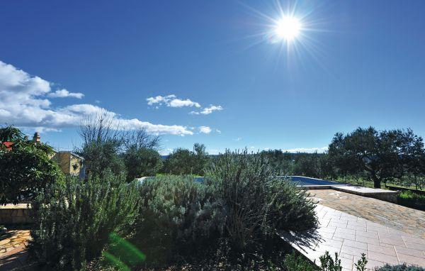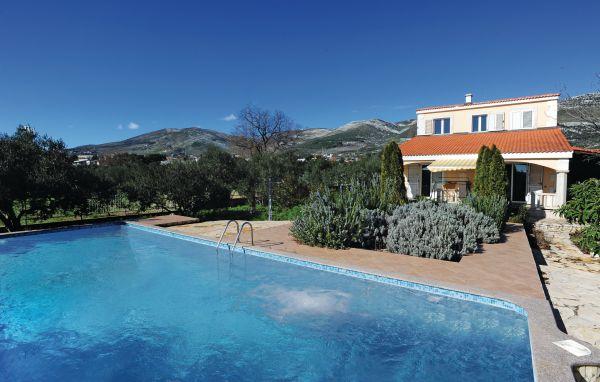 Komletno furnished villa with 3 bedrooms, kitchen and bathroom + separate furnished apartment, swimming pool (55 m2), sauna with exercise equipment, football field with artificial grass, bowling, outdoor terrace, indoor and outdoor grill, parking for several cars, a fence . On the property there is a large olive trees and Mediterranean plants and flowers.