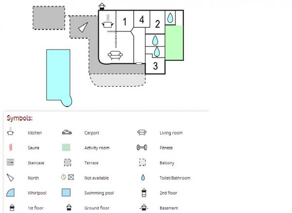 Welcome to our beautiful holiday home, where an inviting swimming pool with a soothing jacuzzi, a spacious garden paradise and an enchanting games room await you to create unforgettable memories in our spacious family oasis. Our modern interior can accommodate 8 guests and features an extraordinary room with a pool table, darts, table football and table tennis. Step into the refined interior of our villa, where 8 people can comfortably accommodate in 4 elegantly decorated bedrooms and 3 bathrooms. Three bedrooms are equipped with comfortable double beds, while one offers two comfortable single beds. The heart of the villa is a spacious and comfortable open-plan living room, which seamlessly blends with the inviting dining room and modern kitchen. The spacious, fenced garden with an inviting swimming pool is surrounded by enchanting flowers, Mediterranean herbs and fruit trees, creating an idyllic setting for outdoor relaxation, swimming, dining and games.