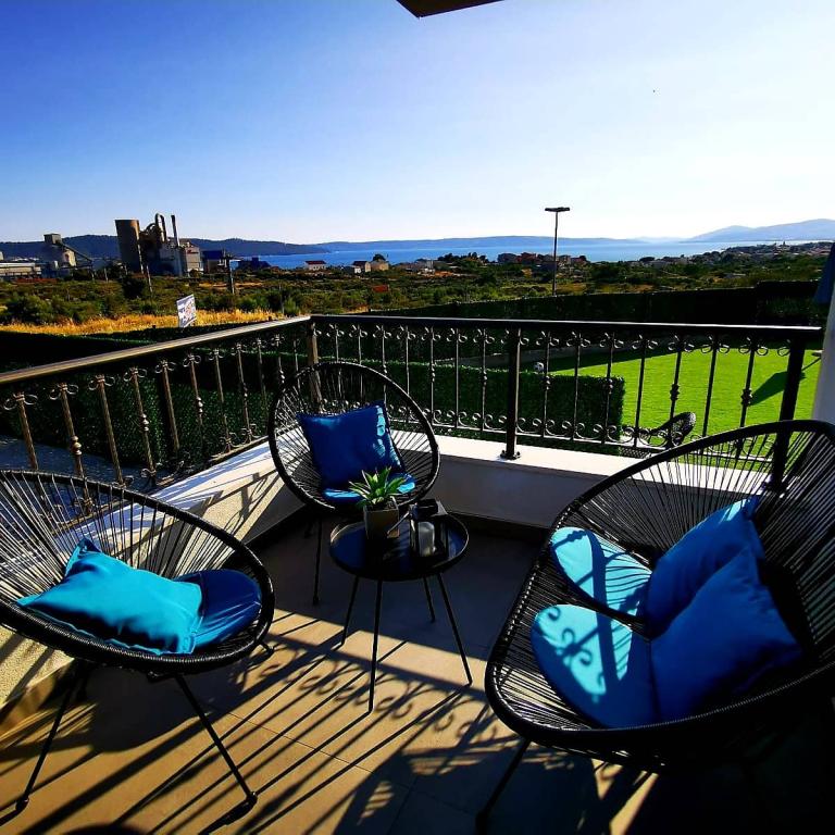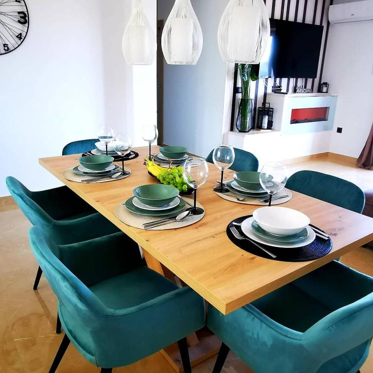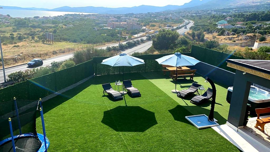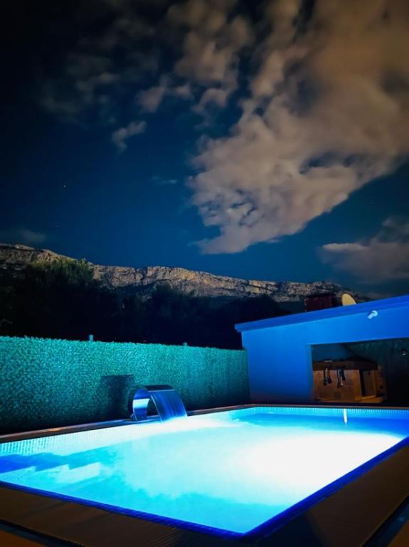 Just 15 minutes by car from the center of Split, on the border of Split and Kaštela, in Kaštel Sućurac, there is a holiday house with 2 apartments, fully furnished, 4 stars in a quiet environment. The house has a 6*4 swimming pool, jacuzzi and barbecue area, as well as free parking within the building. The bus stop is only a 5-minute walk away, and supermarkets and shops are within 3 km distance... The archaeological-historical walls of Salona are nearby, and the historical Kliška fortress is only 10 km away. The airport is about 12 km away. The house is rented as a set, each apartment has its own entrance and its own fully equipped kitchen. Possible stay of 12 people in 2 apartments + 2 sofa beds for two people as needed. Additional guests are considered over 12 and are charged extra.