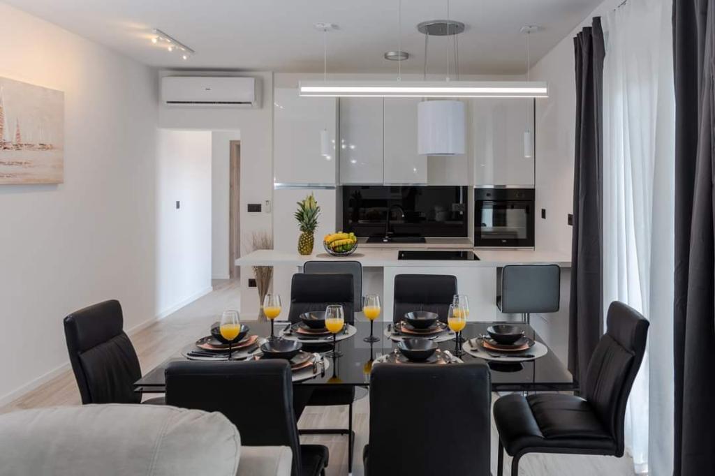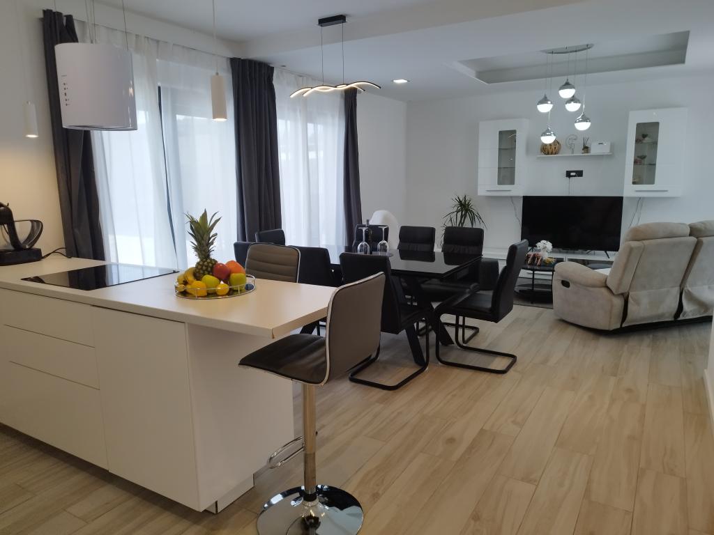 Villa Infinity is located in Kaštel Novi, a small town in the Split region. At your disposal is a spacious terrace with sunbeds and umbrellas, as well as a seasonal outdoor pool measuring 10x4, a private massage tub and a garden. An outdoor kitchen with barbecue equipment is at your disposal. This facility has access to an electric car charging station. Private parking is provided, and no reservation is required. A garage is available. A baby cot is available on request. Pets allowed.